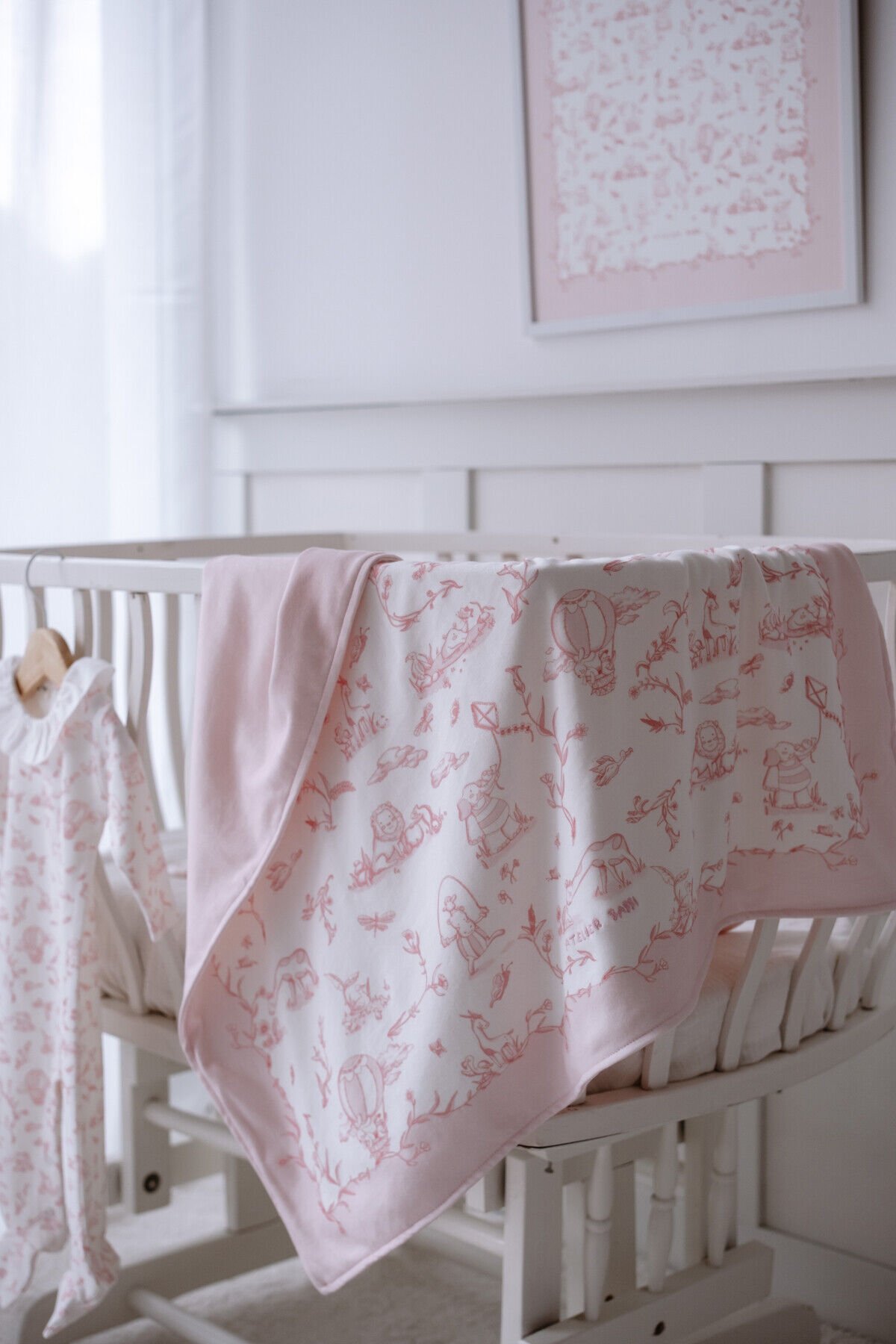ÇİFT TARAFLI BEBEK BATTANİYESİ - TOİLE DE JOUY/PEMBE