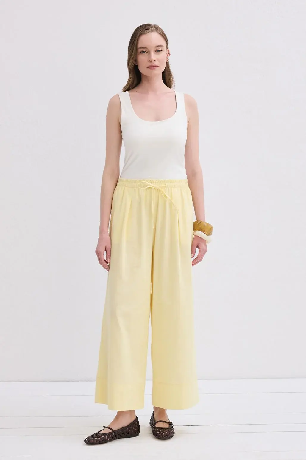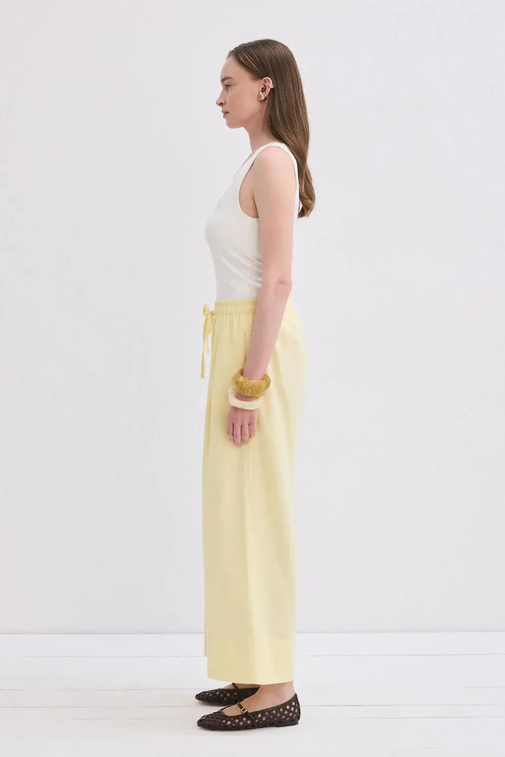 Doren Keten Pantolon Limon Sarısı, viskon karışımlı kumaşıyla nefes alabilir bir rahatlık sunar. Yüksek bel formu ve lastikli yapısı ile konforu ön planda tutarken, bol kesim tasarımıyla hareket özgürlüğünü sağlar. Double paça detayı, modern bir dokunuş katarak stilinize zarif bir hava katar. Günlük kombinlerde rahat bir şıklık için basic gömleklerle tercih edebilirsiniz. Hafifliği ve rahatlığıyla yaz gardırobunuzun vazgeçilmezi olmaya aday!
