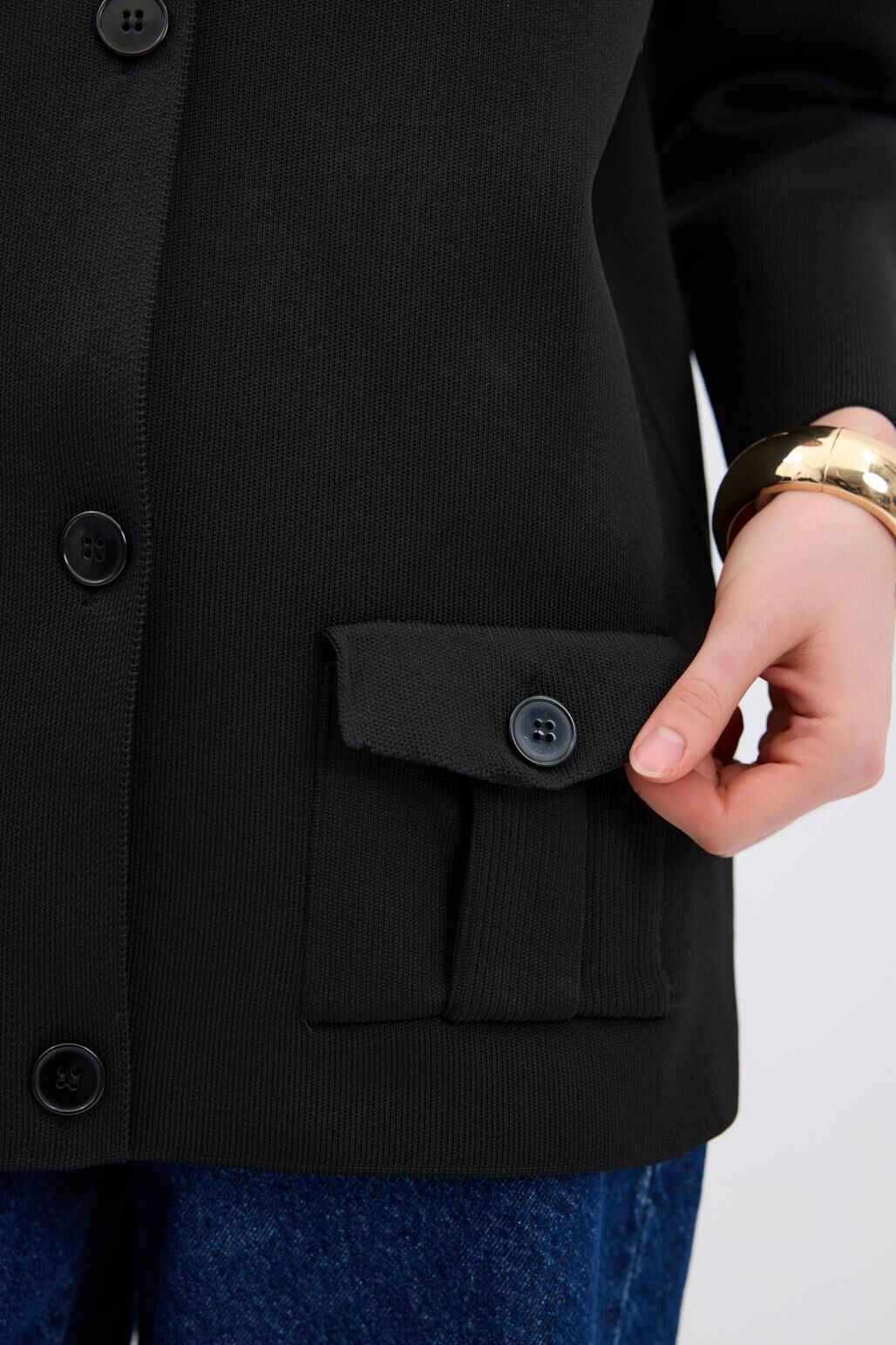 DÜZ RENK CEPLİ TRİKO HIRKA