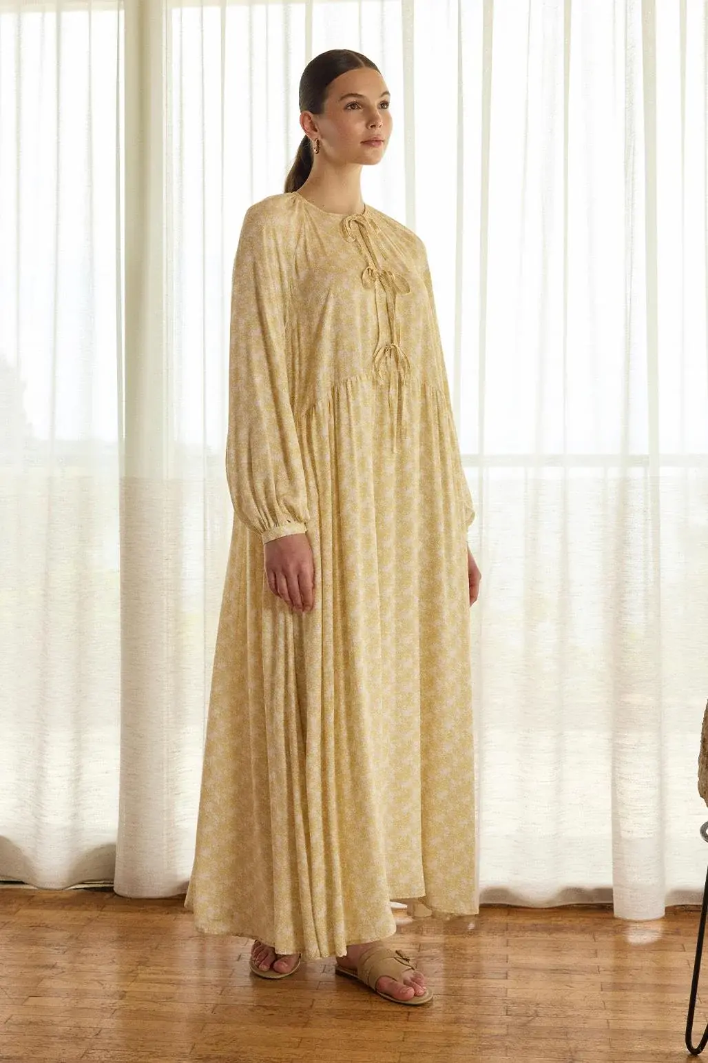 FLEUR VİSKON BAĞLAMALI UZUN ELBİSE