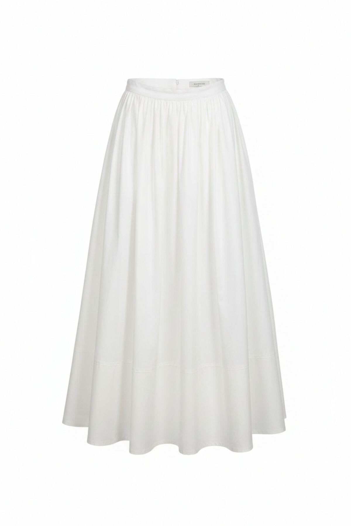 HİLAY GABARDİN KUMAŞLI BÜZGÜLÜ PAMUKLU ETEK BEYAZ