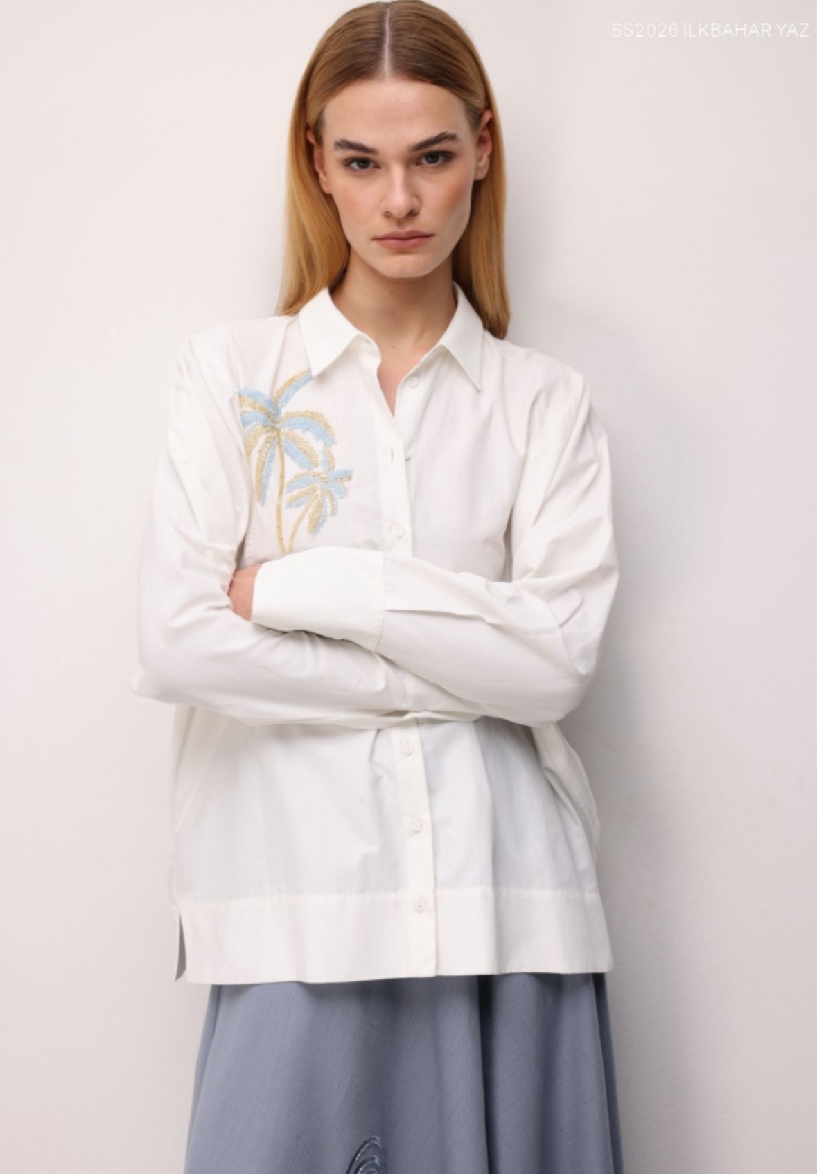 KÂHMA İŞLEMELİ BEYAZ GÖMLEK