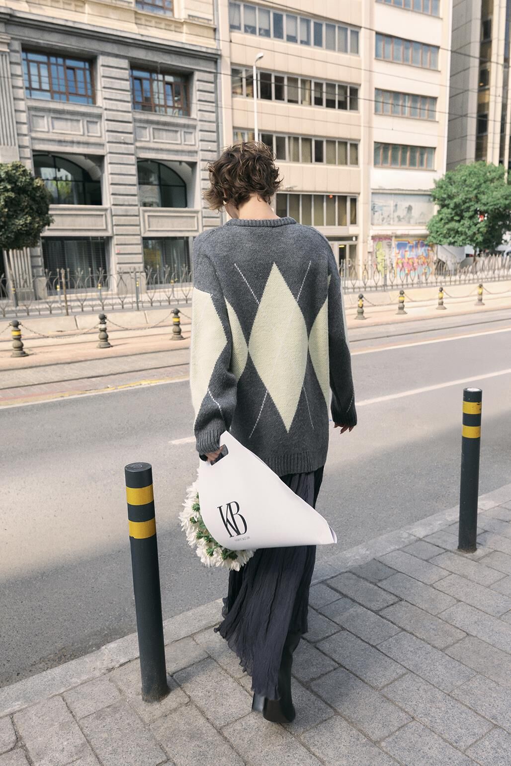 KADRİYE BAŞTÜRK BAKLAVA DESENLİ TRİKO KAZAK GRİ