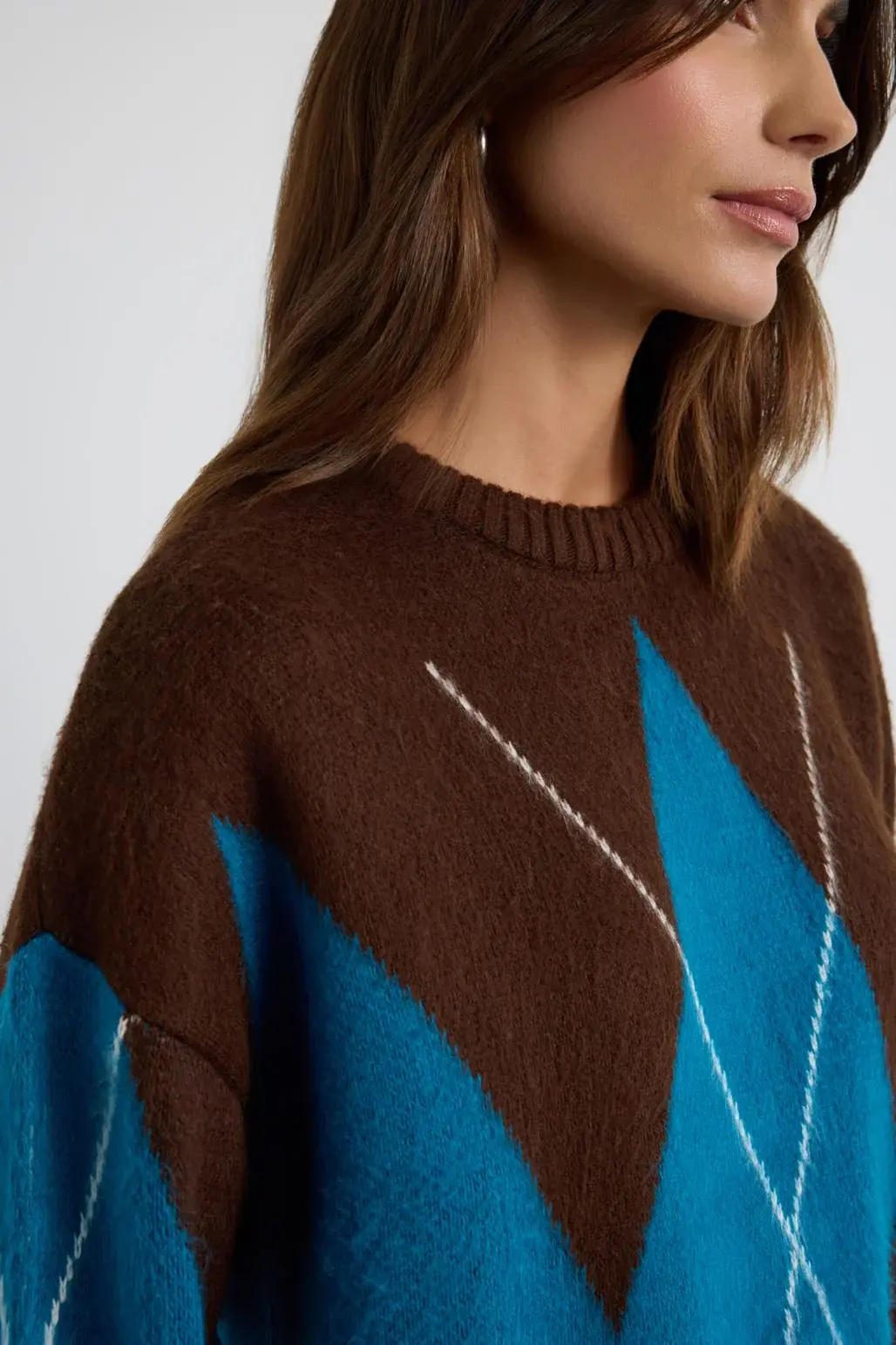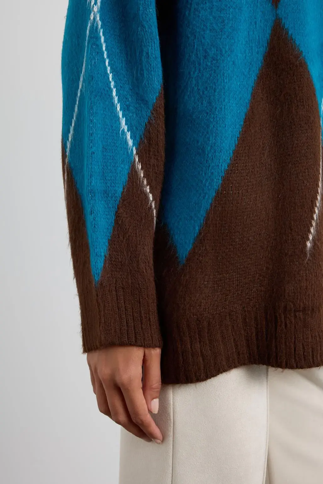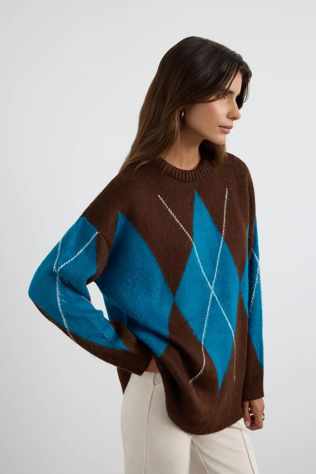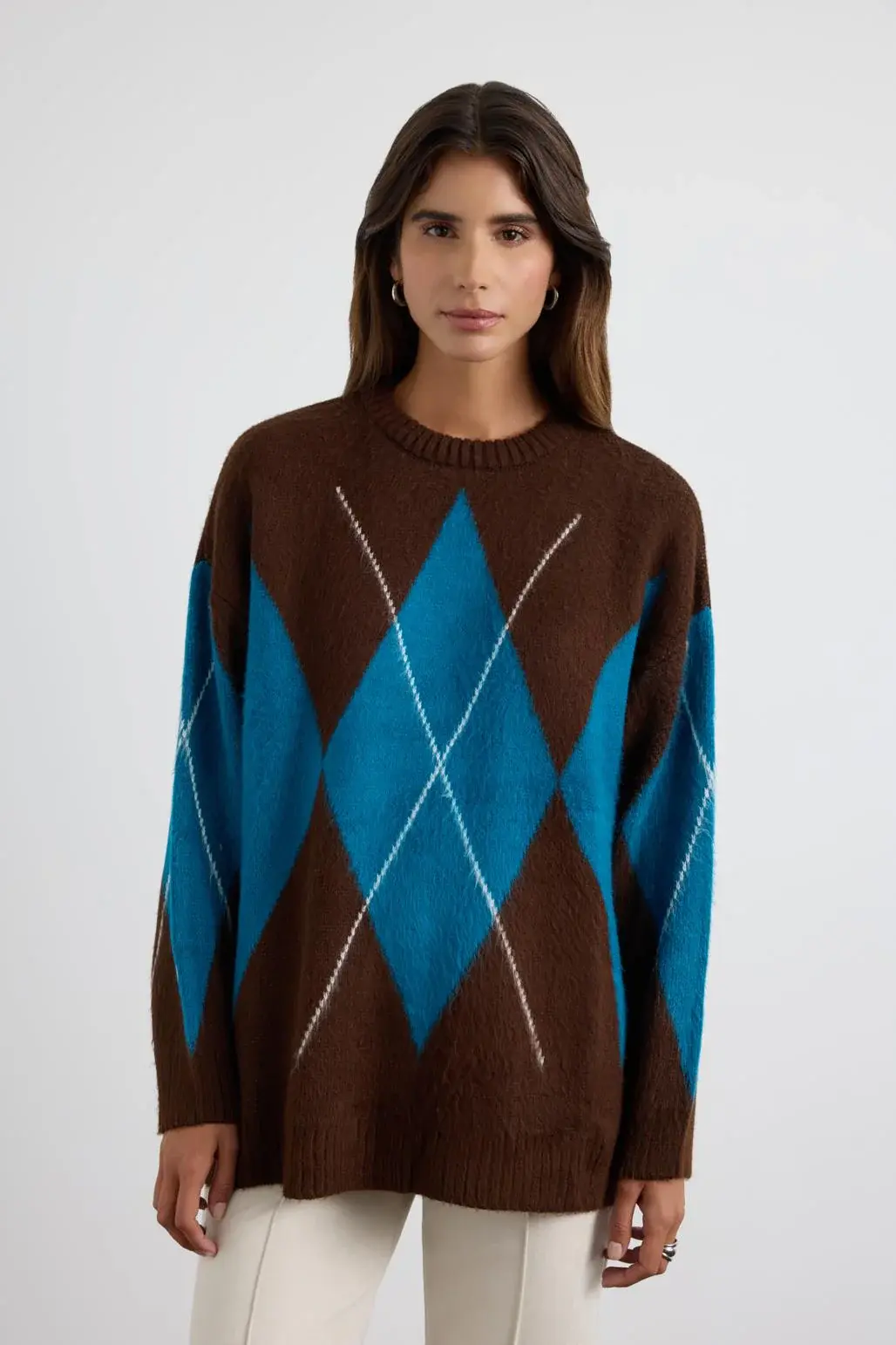 KADRİYE BAŞTÜRK BAKLAVA DESENLİ TRİKO KAZAK KAHVE