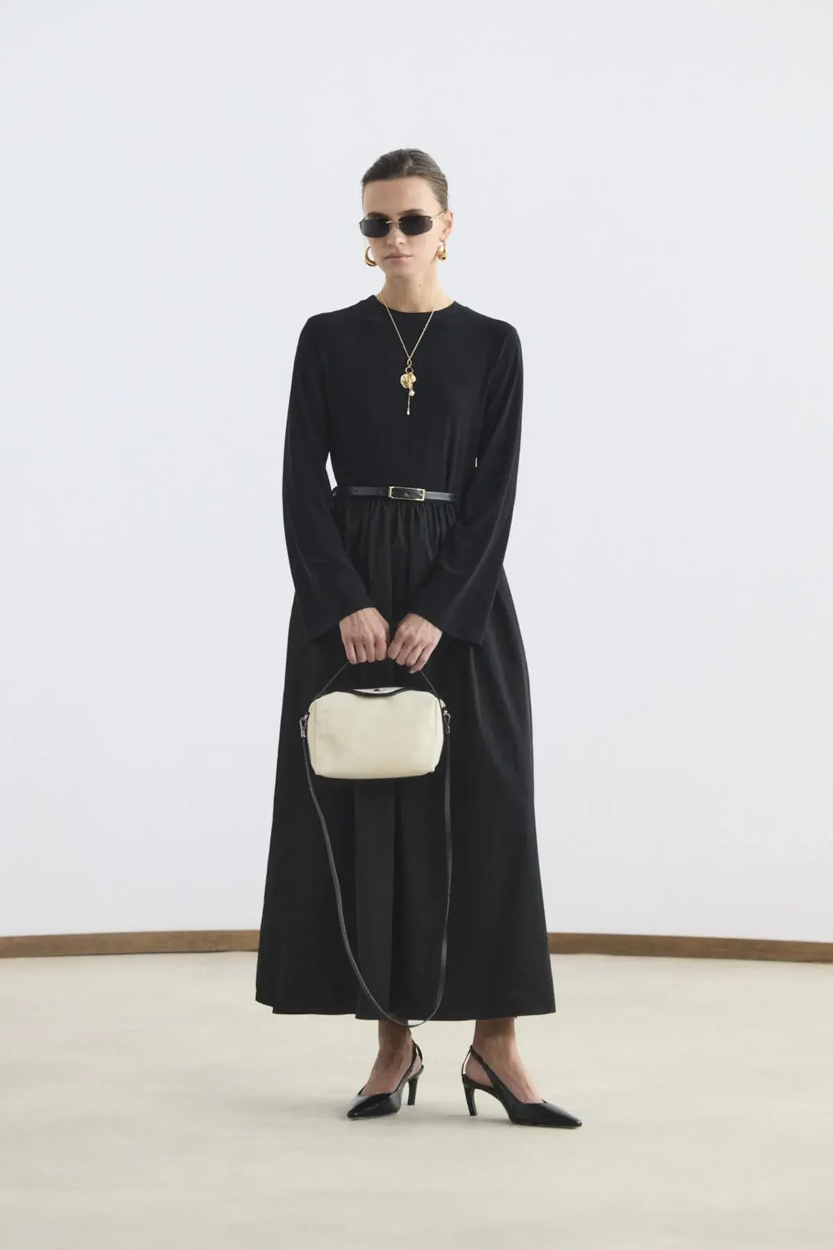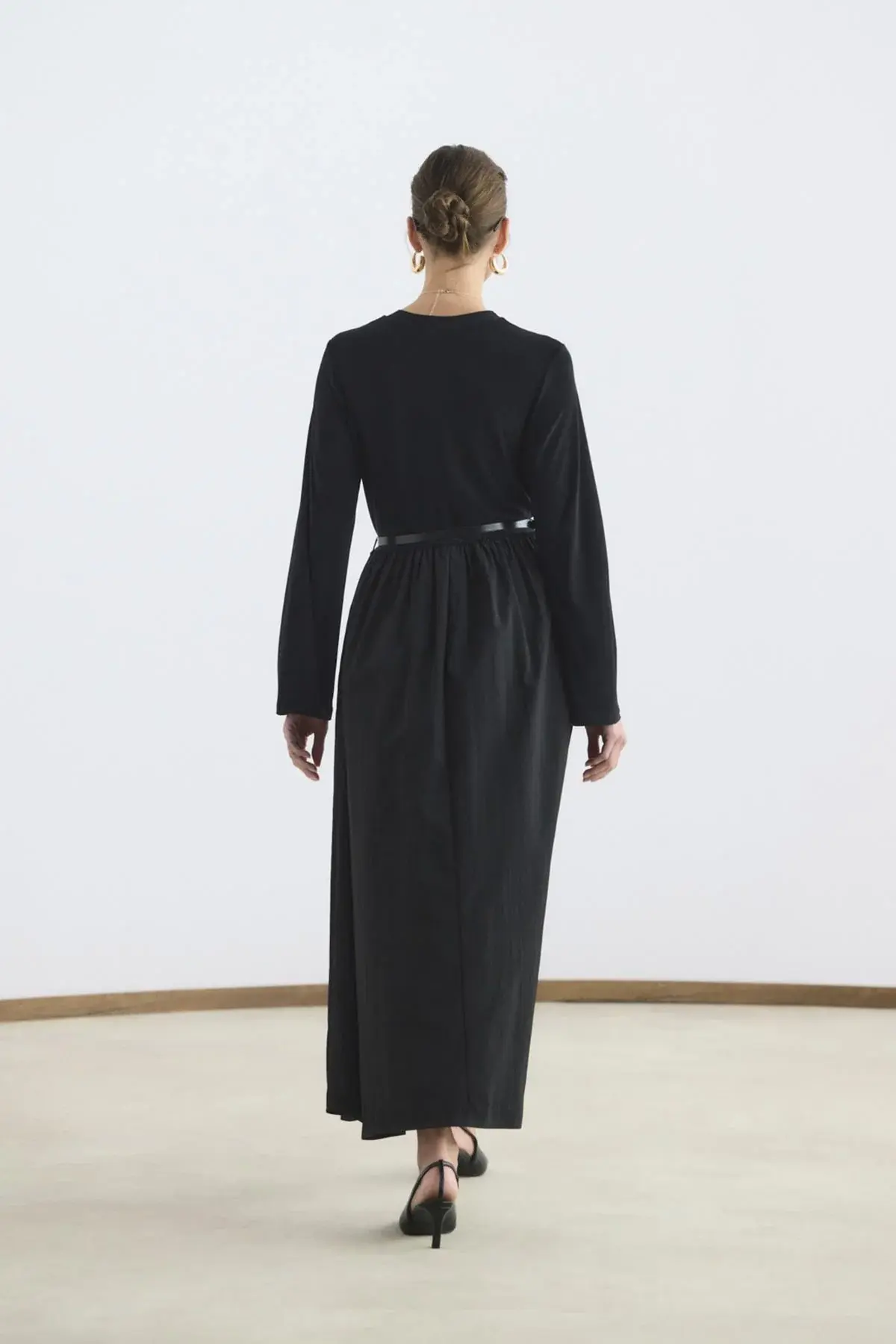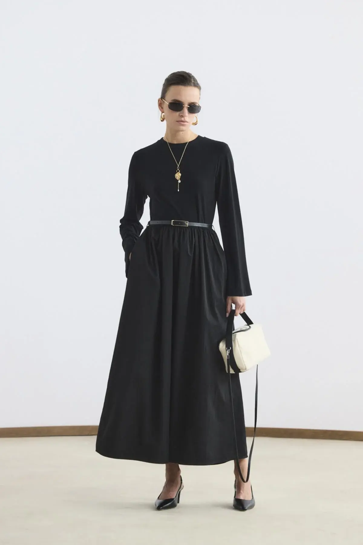KADRİYE BAŞTÜRK DAR KESİM KEMERLİ MİX ELBİSE SİYAH