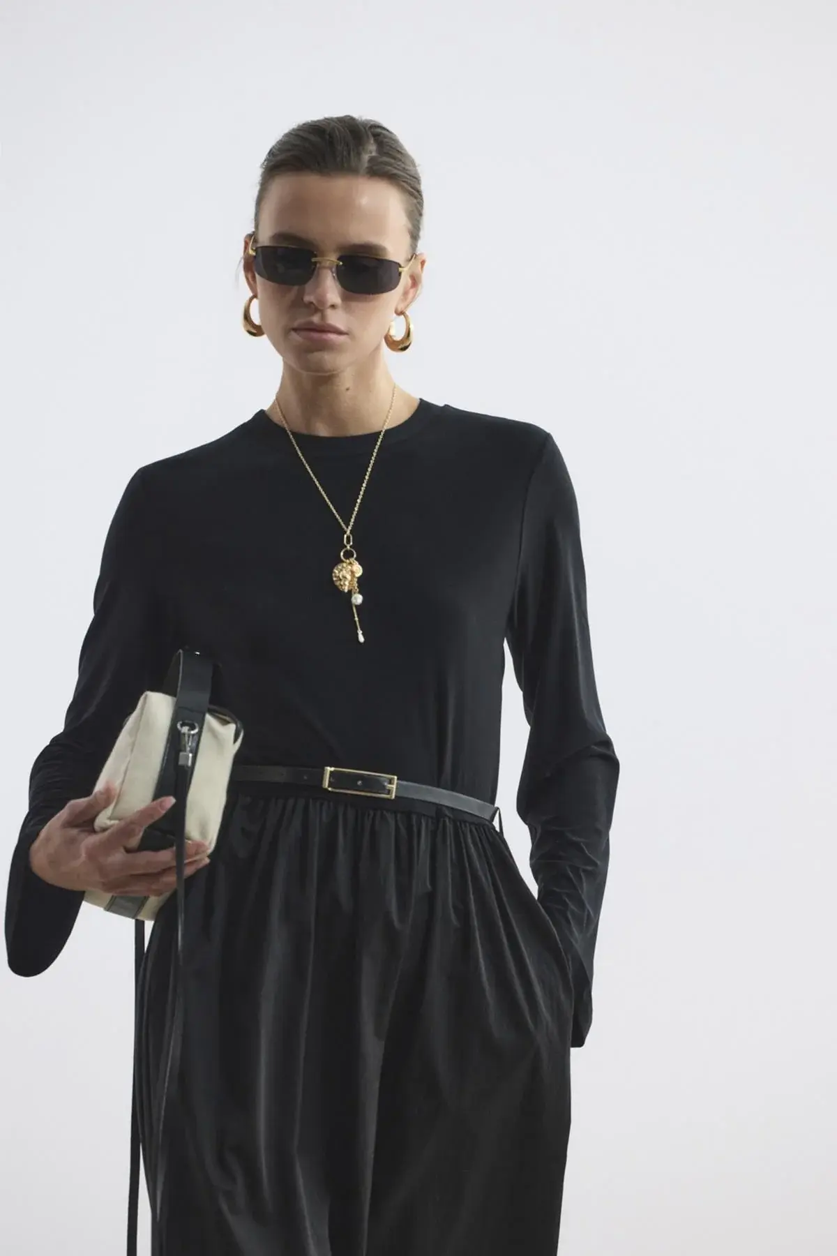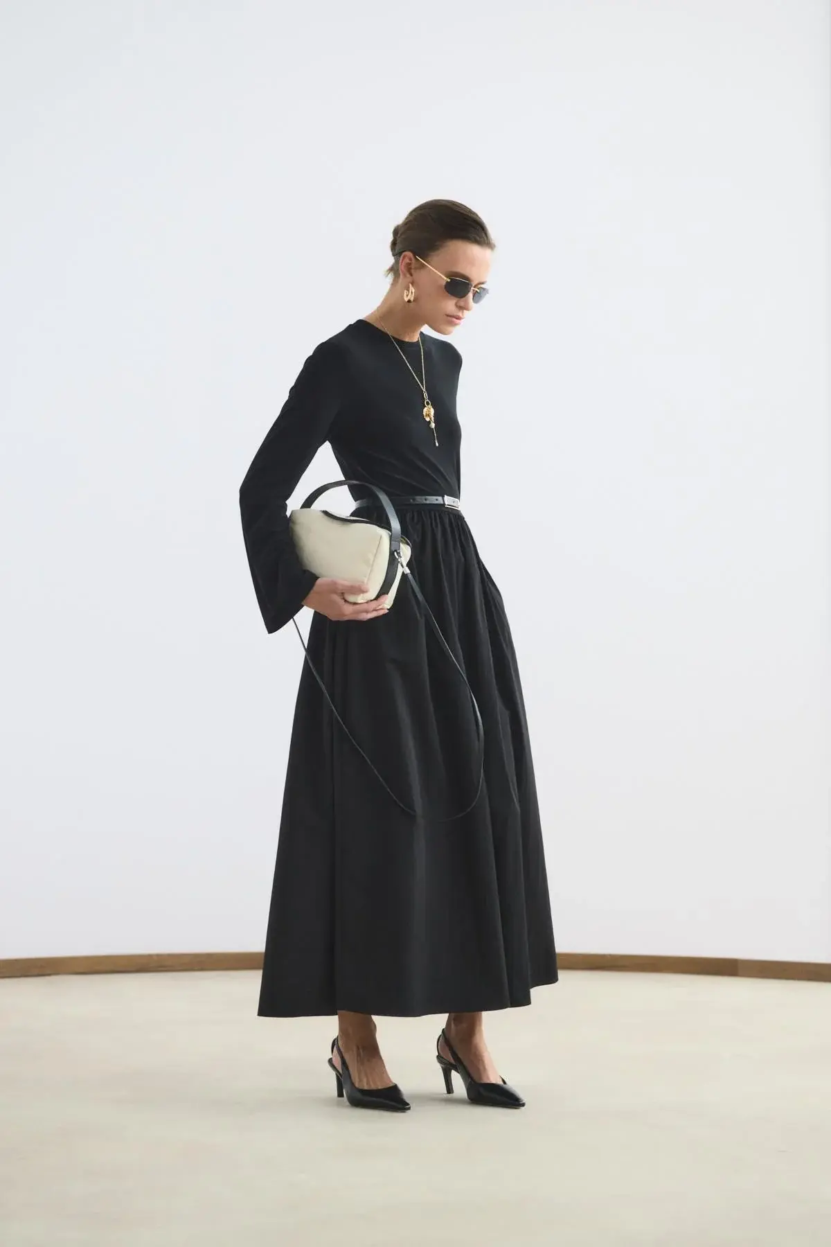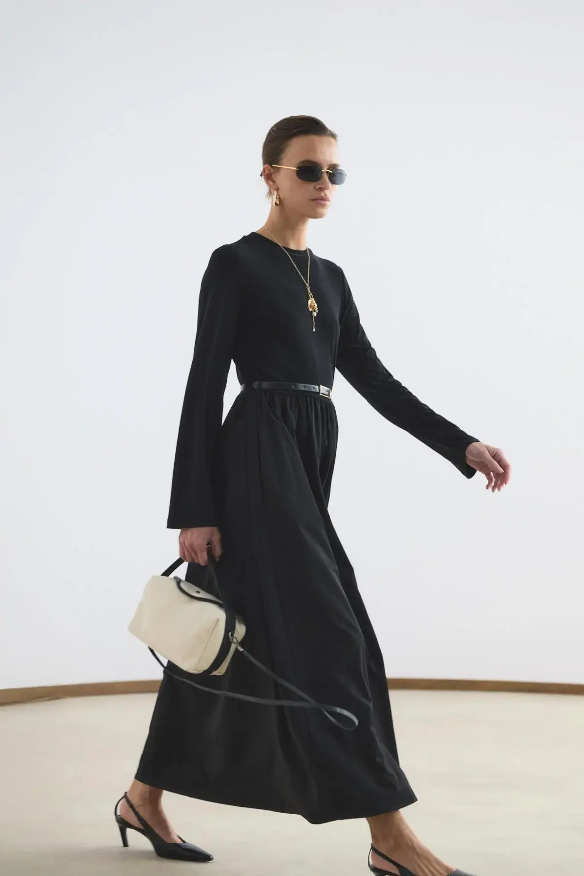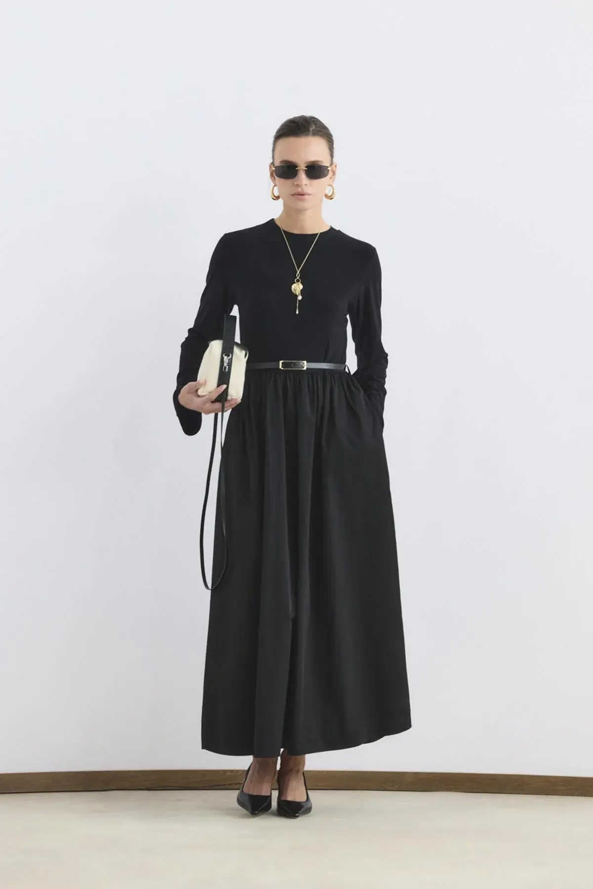 KADRİYE BAŞTÜRK DAR KESİM KEMERLİ MİX ELBİSE SİYAH