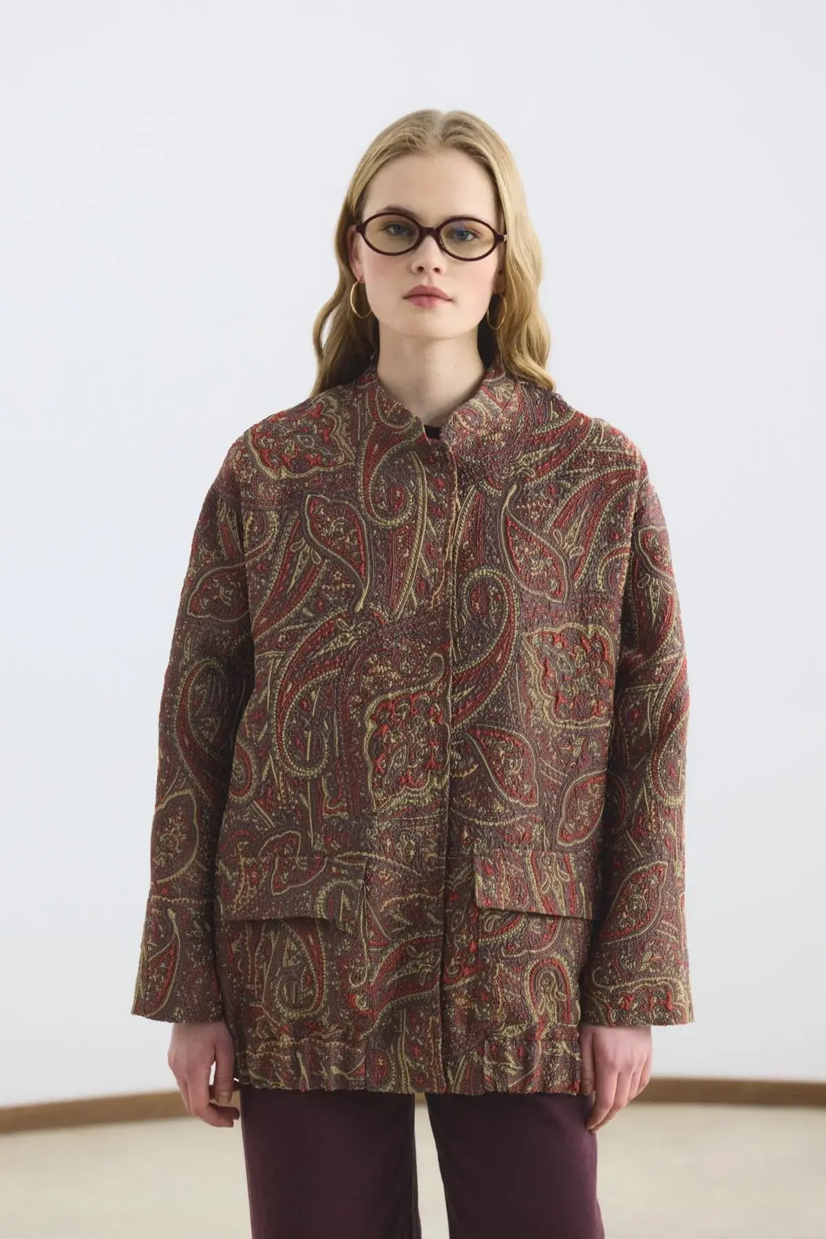 KADRİYE BAŞTÜRK DESENLİ JAKAR BOMBER CEKET KAHVERENGİ