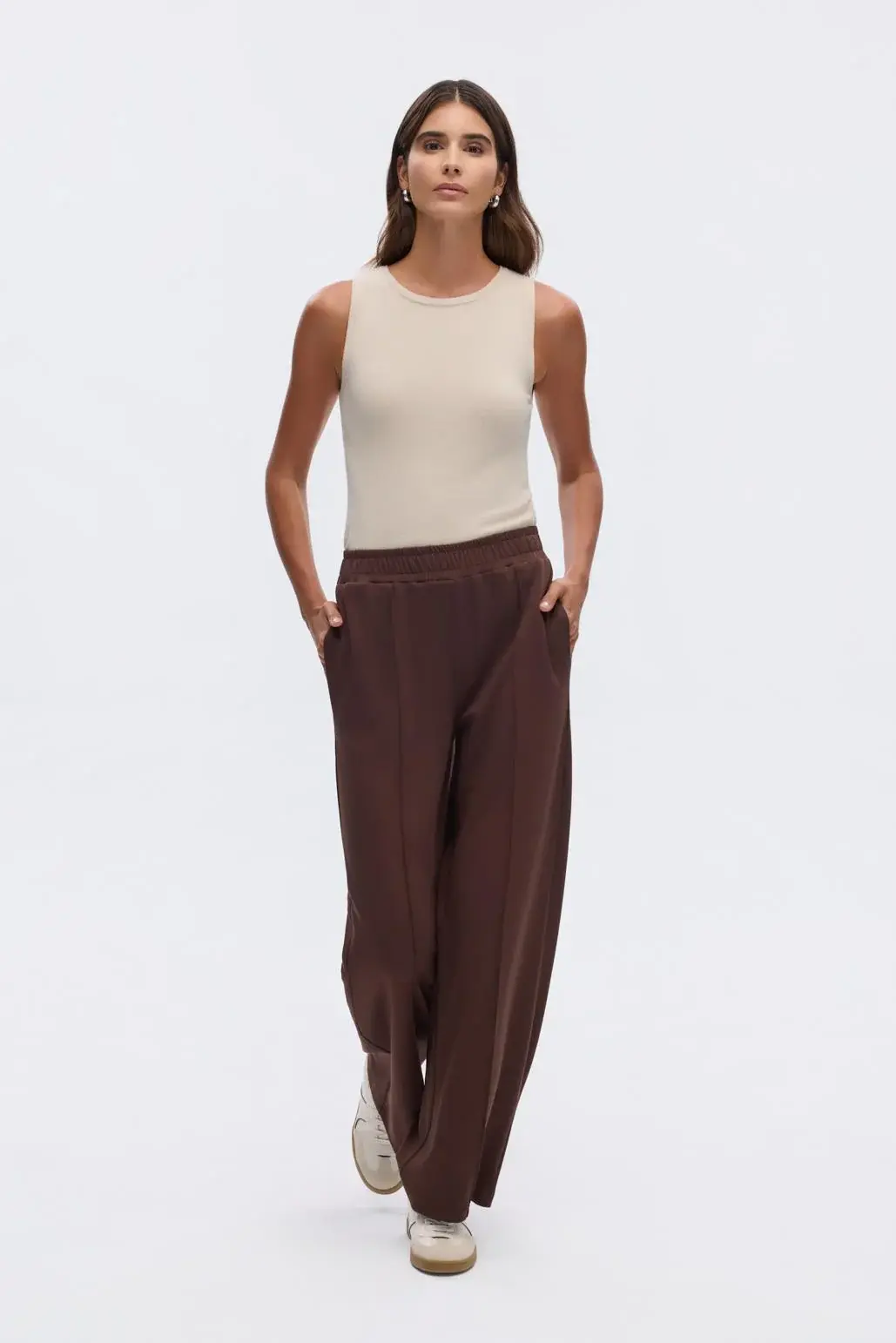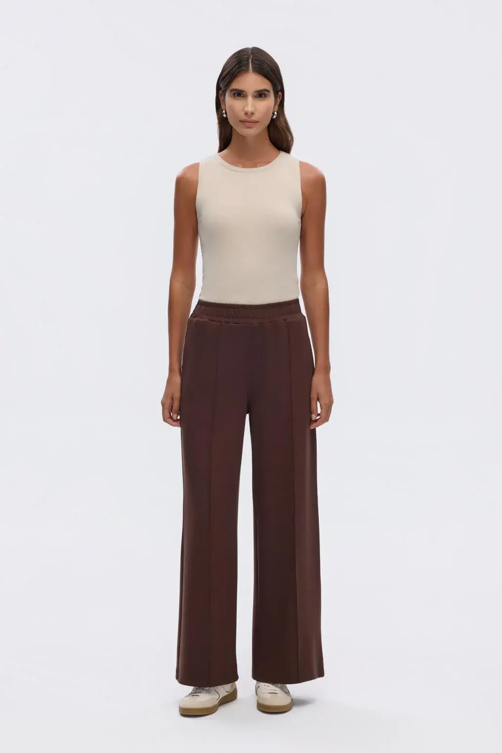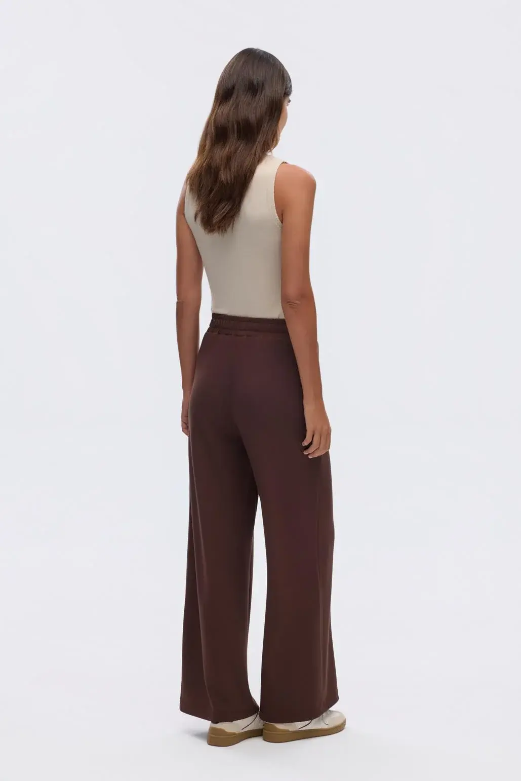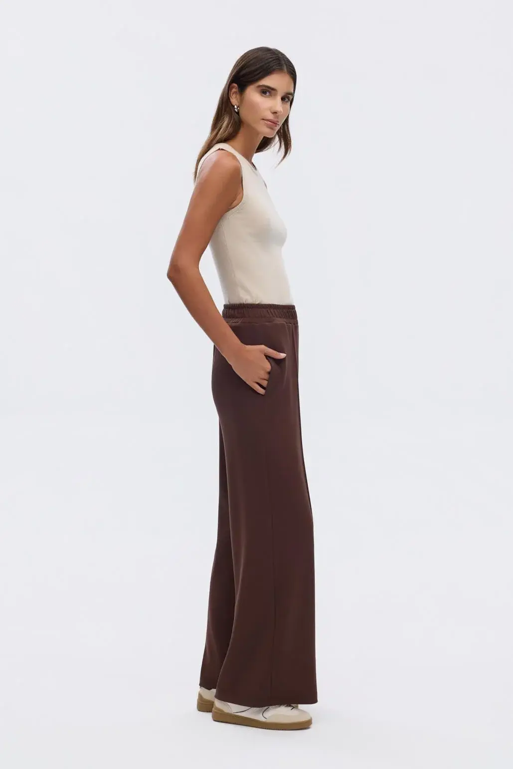 Modal Örme Bol Kesim Pantolon Kahve, esnek ve yumuşak dokulu kumaşı sayesinde rahat ve konforlu olmanızı sağlar. Yüksek bel ve önden dikiş detayı ile fit, toparlayıcı bir görünüm vadeder.