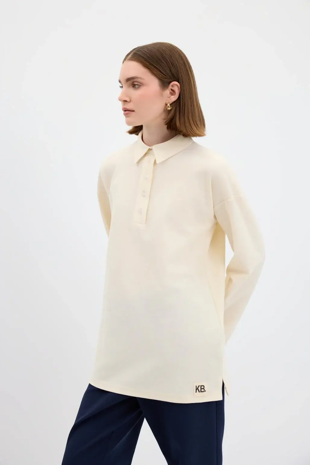 KADRİYE BAŞTÜRK POLO YAKA YANDAN YIRTMAÇLI SWEATSHİRT EKRU