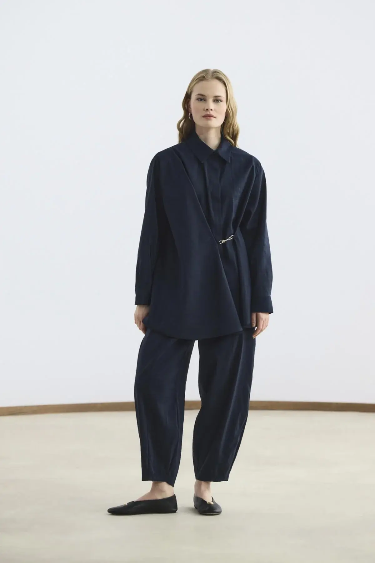 KADRİYE BAŞTÜRK TOKA DETAYLI ANVELOP GÖMLEK PANTOLON LACİVERT
