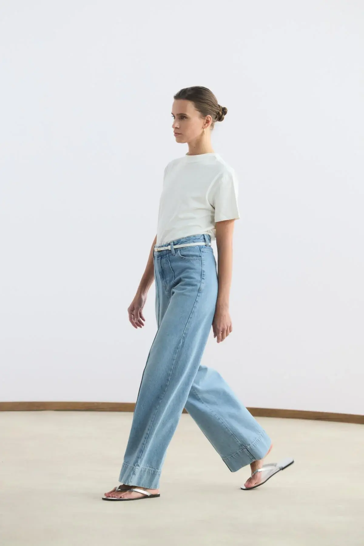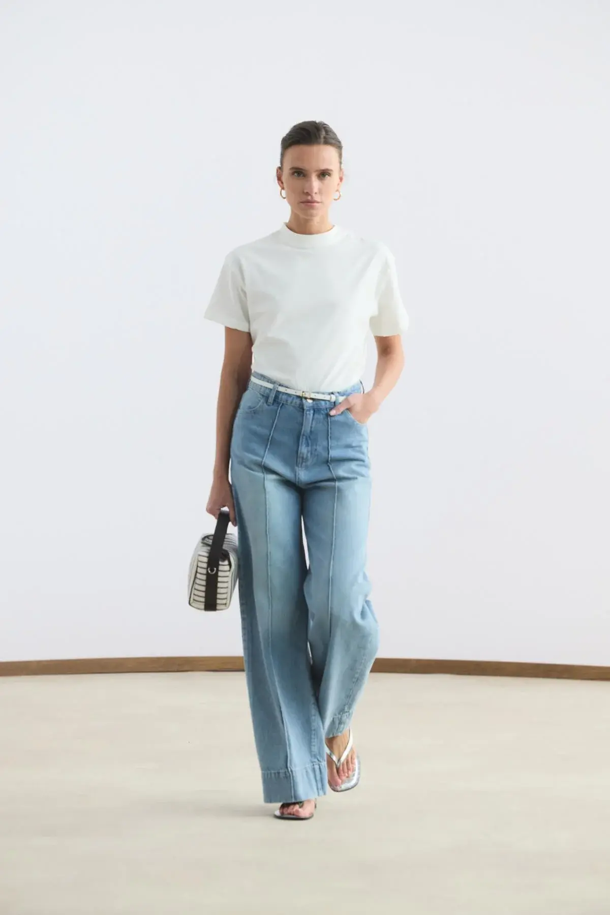 Yüksek Bel Geniş Paça Pantolon Açık Mavi, likralı gabardin kumaşı sayesinde gün boyu esnek ve konforlu bir kullanım sunar. Yüksek bel yapısı ve geniş paça kesimi, modern ve şık bir görünüm kazandırır. Gömlek ve bluz gibi farklı üst giyim parçalarıyla kolayca kombinlenebilir; günlük kombinlerden ofis şıklığına kadar birçok farklı ortamda rahatlıkla tercih edilebilir.