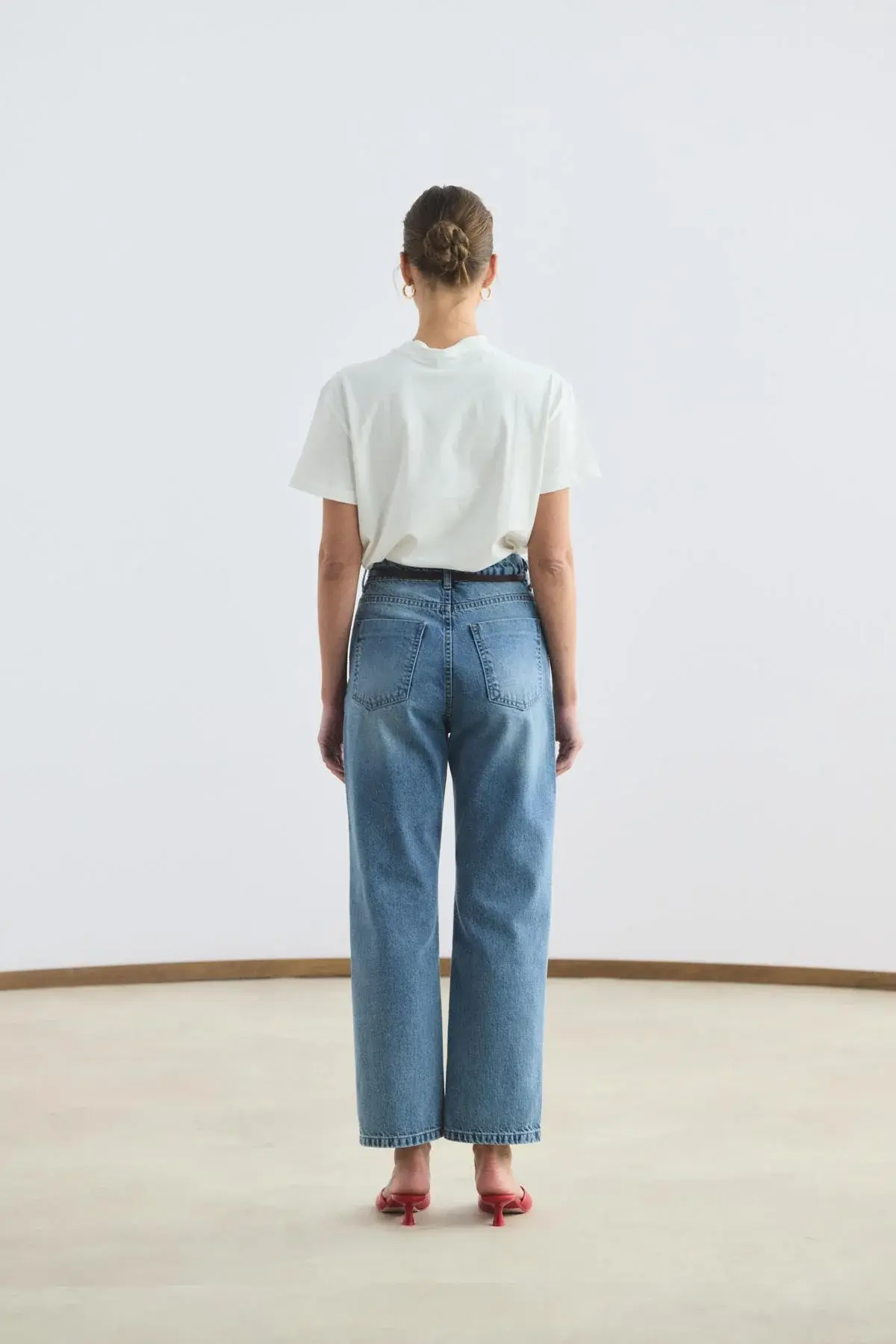 KADRİYE BAŞTÜRK YÜKSEK BEL DÜZ PAÇA KOT PANTOLON AÇIK MAVİ