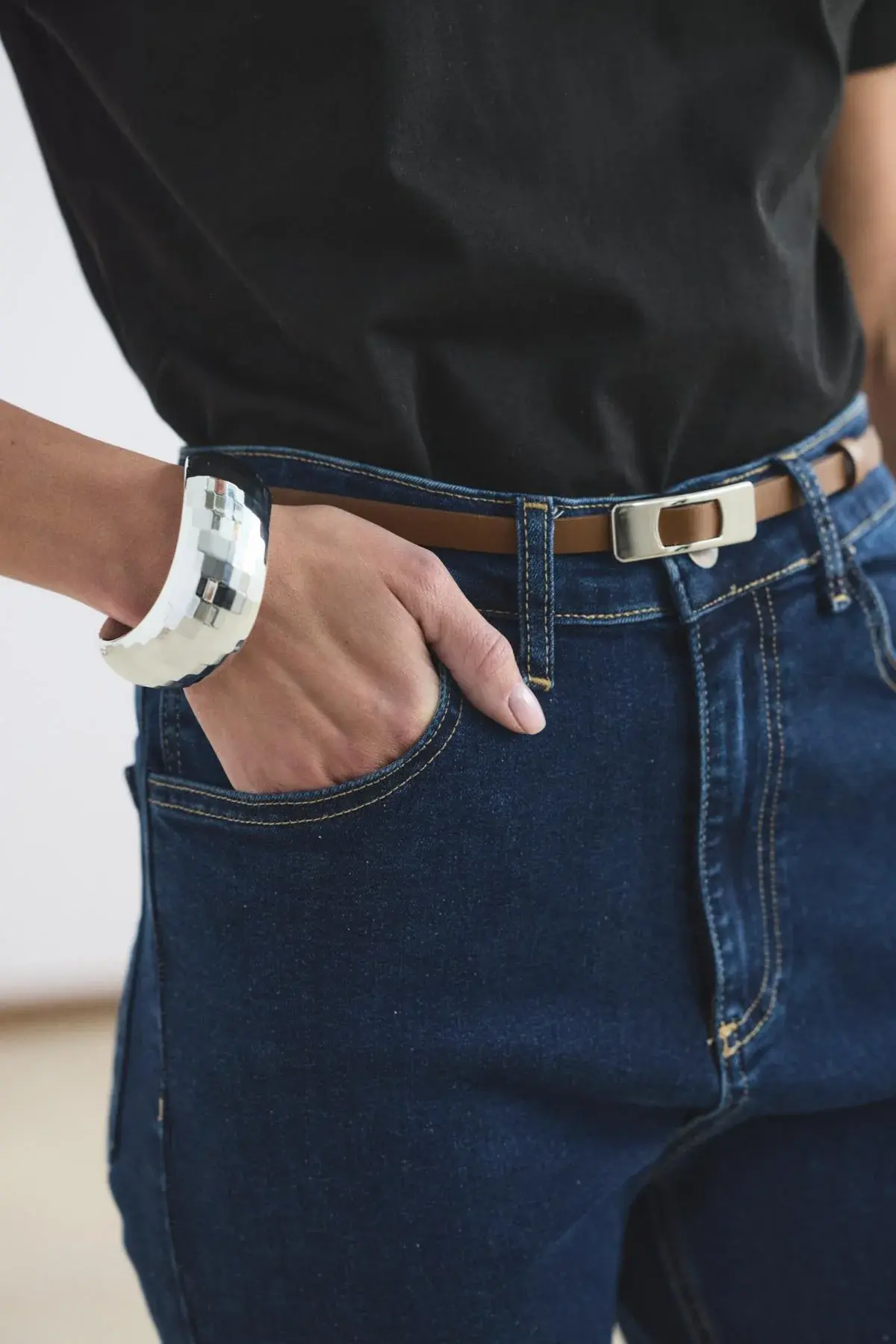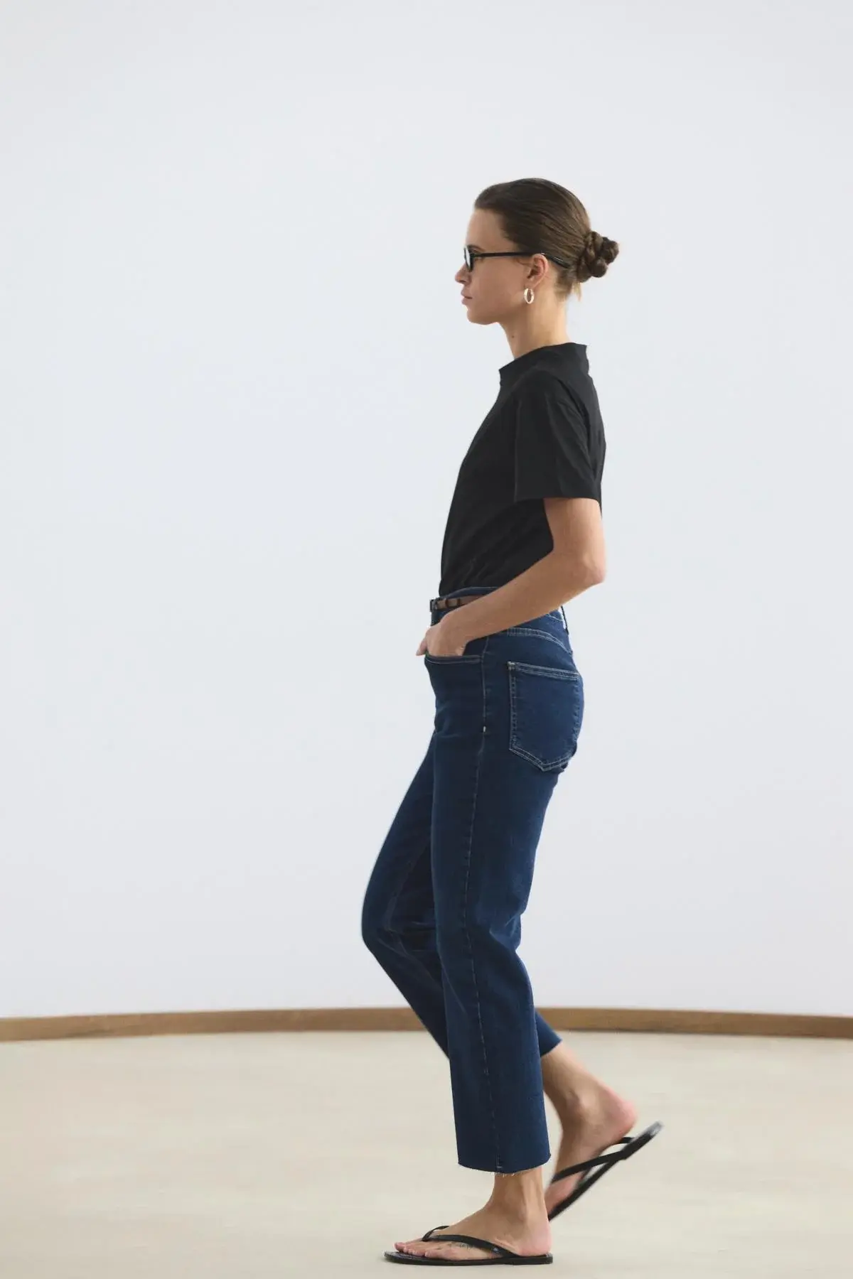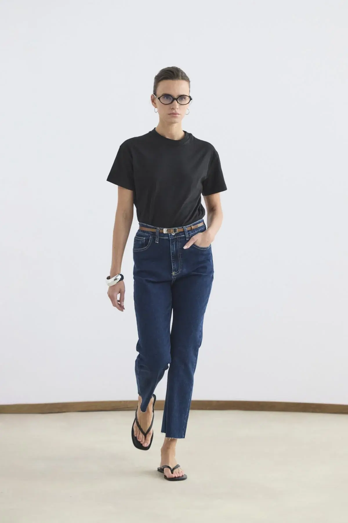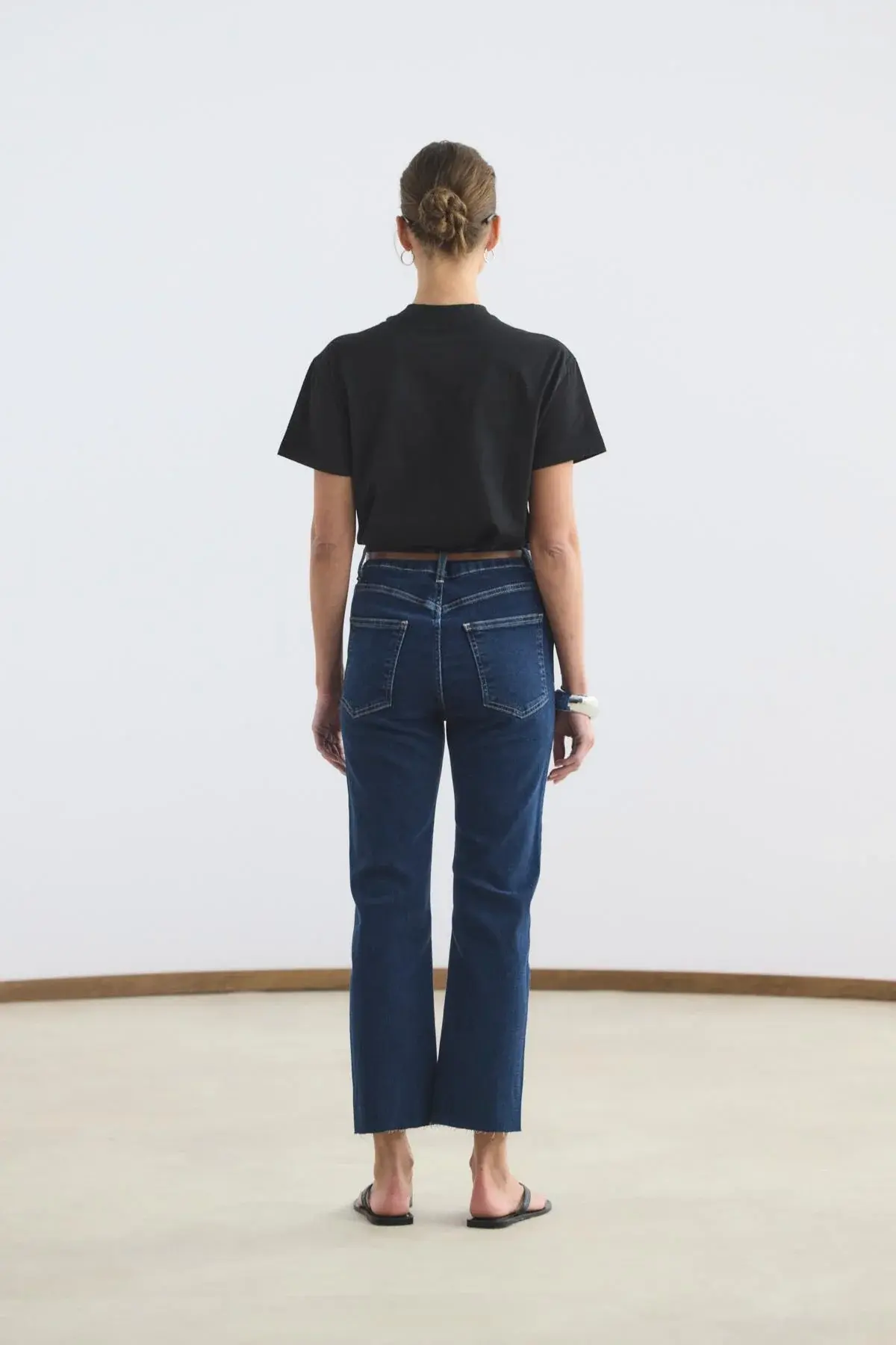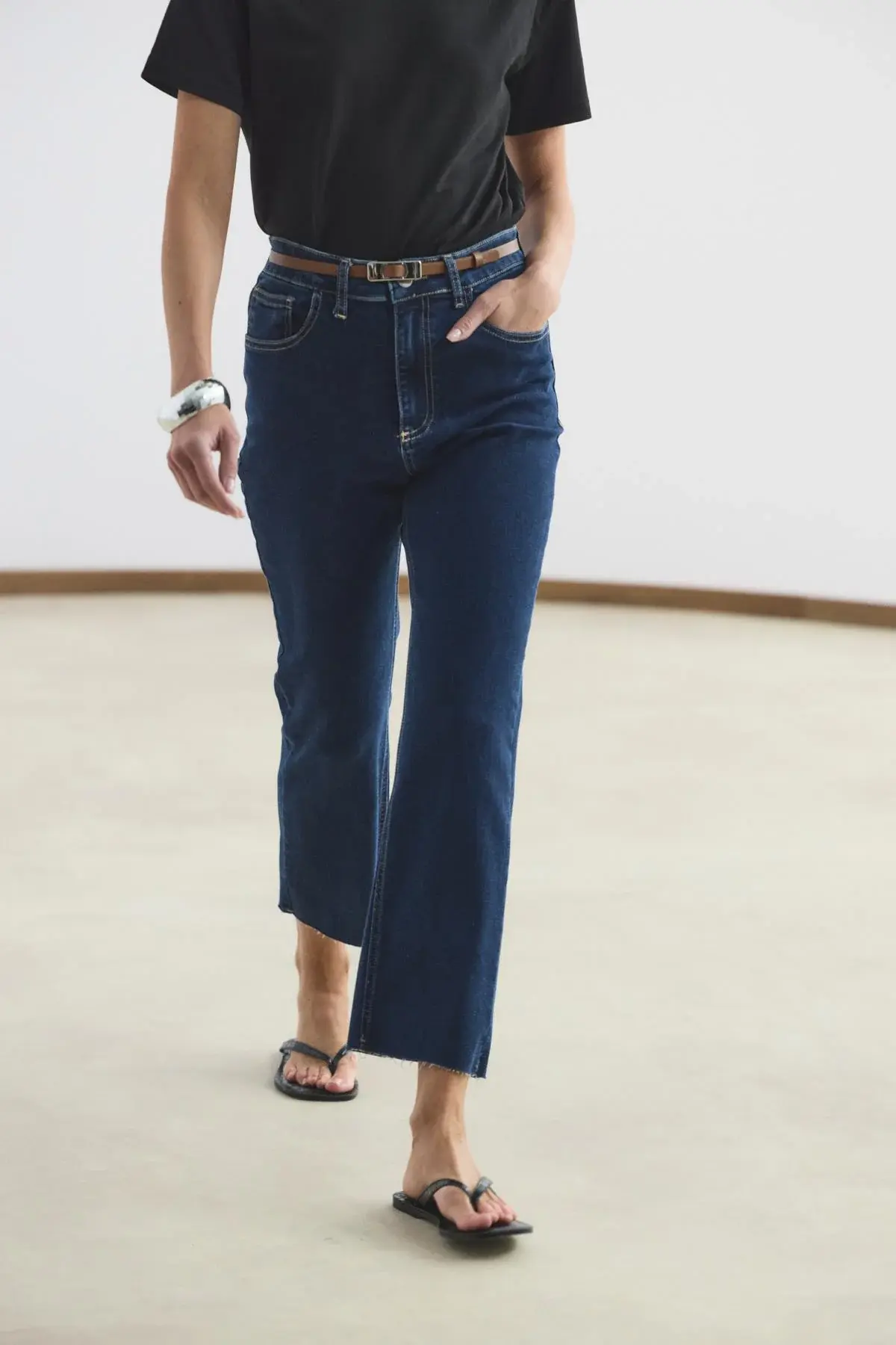 KADRİYE BAŞTÜRK YÜKSEK BEL KISA KESİM ÇAN PAÇA KOT PANTOLON KOYU MAVİ