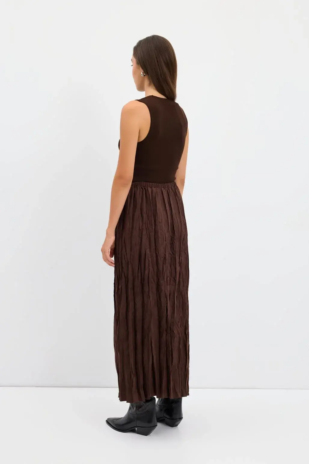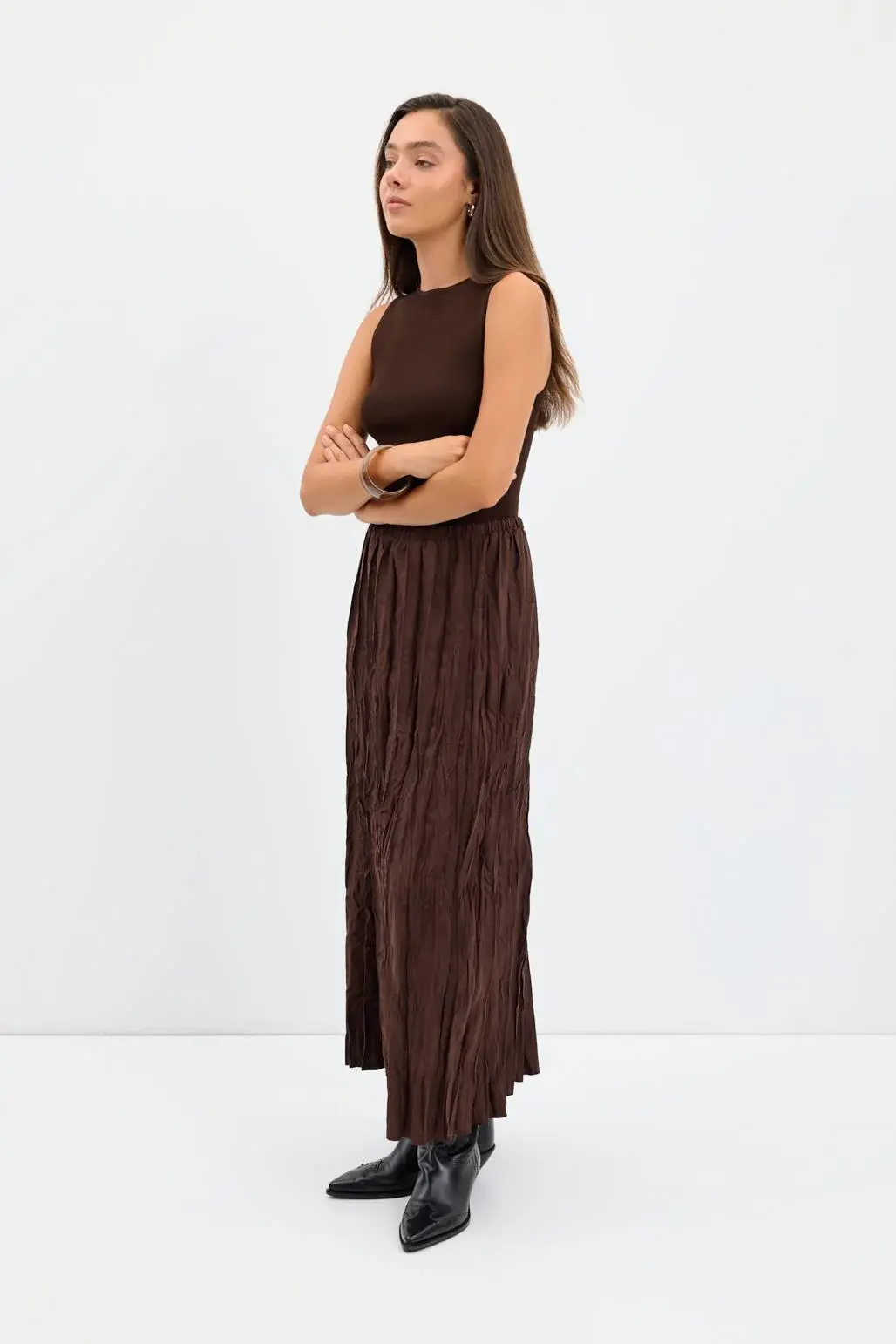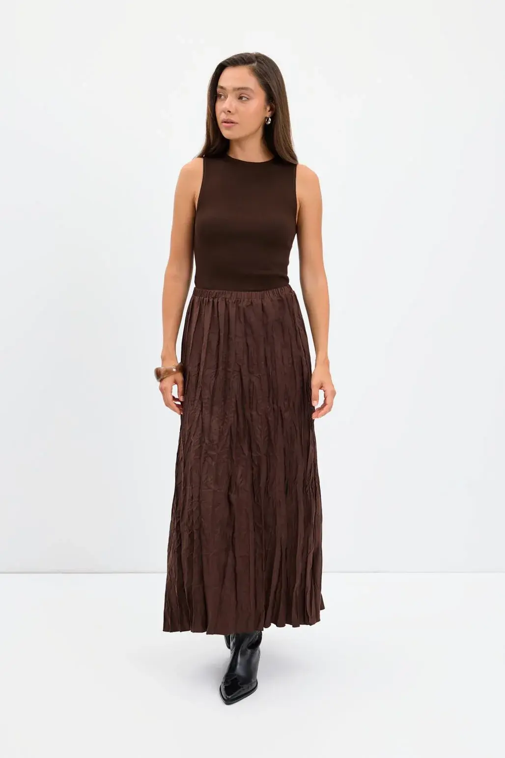 Kırışık Görünümlü Uzun Süet Etek Kahve