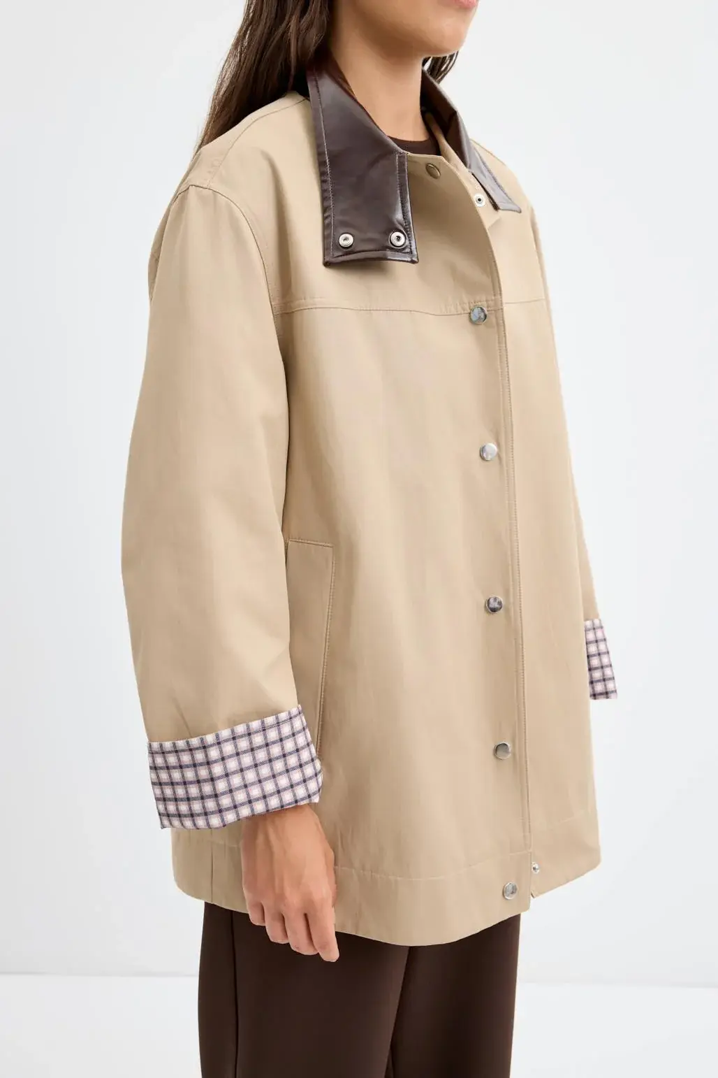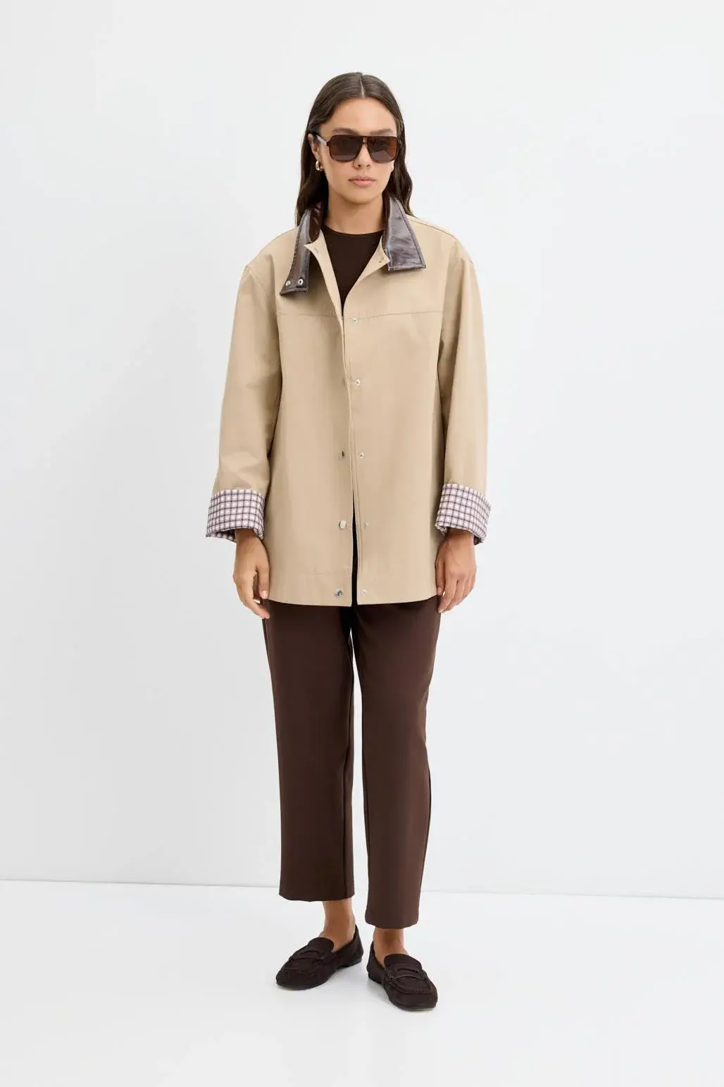 KONTRAST YAKALI EKOSE ASTARLI TRENÇKOT