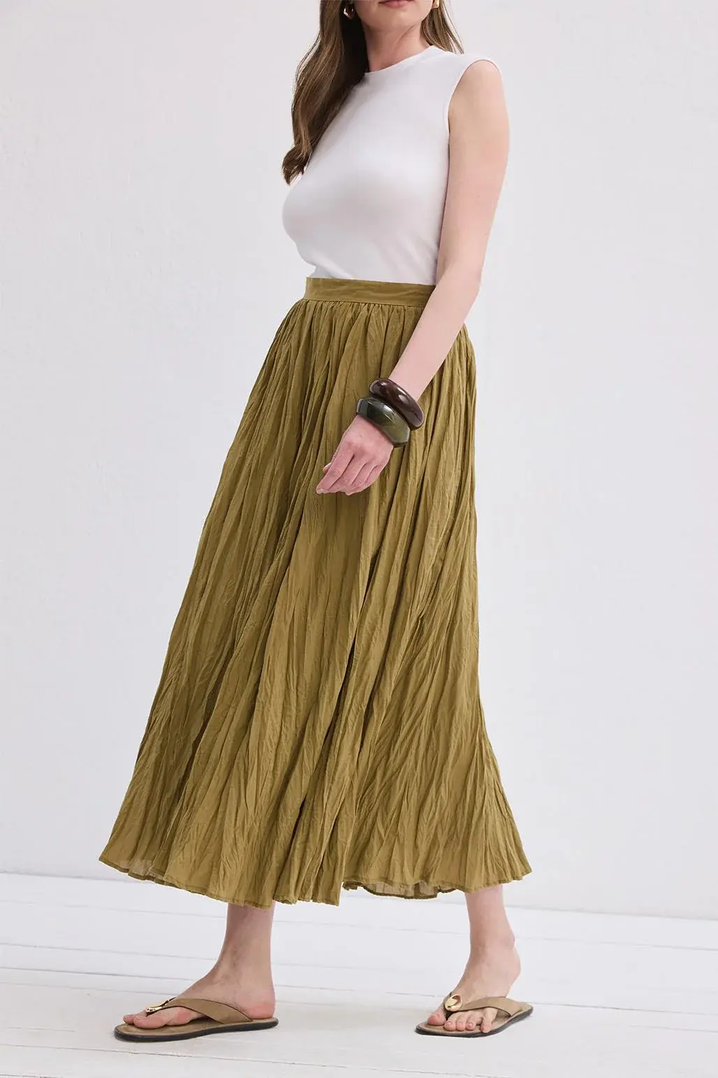 - Crush plise efektli kloş uzun etek.