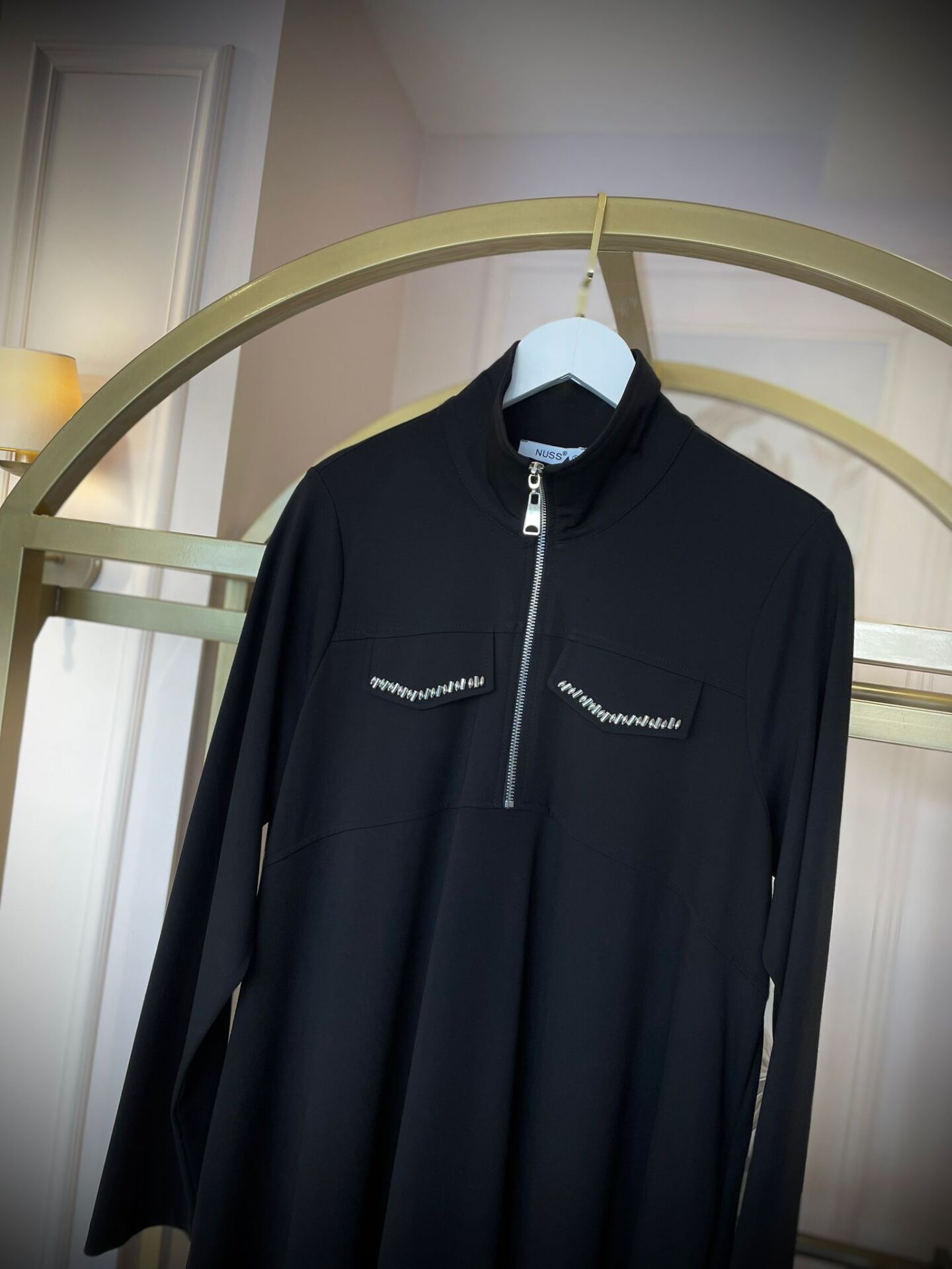 NUSS FERMUAR DETAYLI ELBİSE SİYAH