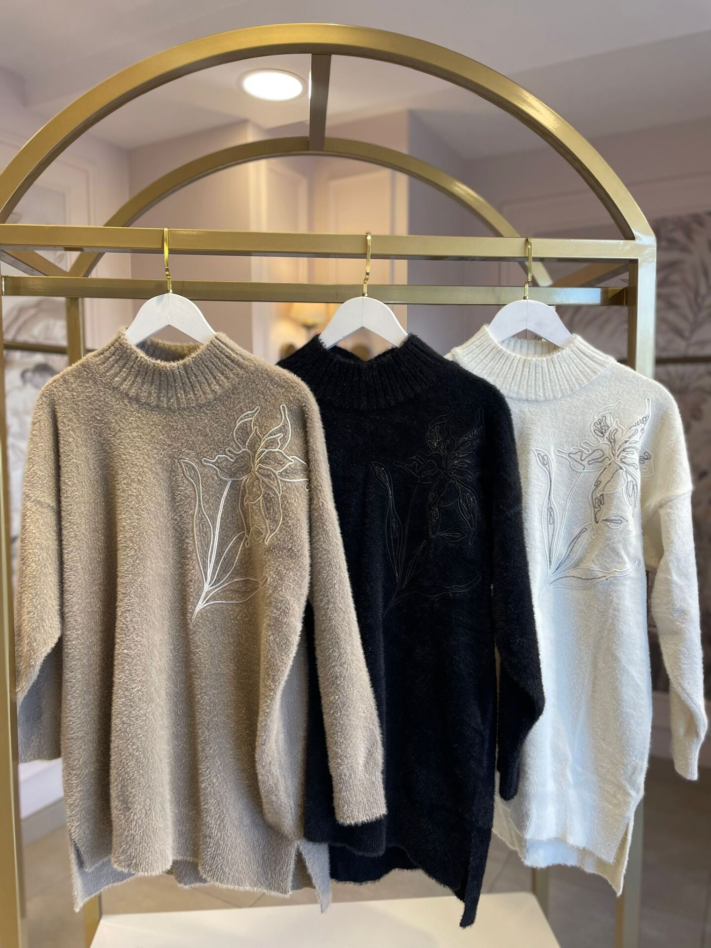 NUSS İŞLEMELİ KAZAK EKRU