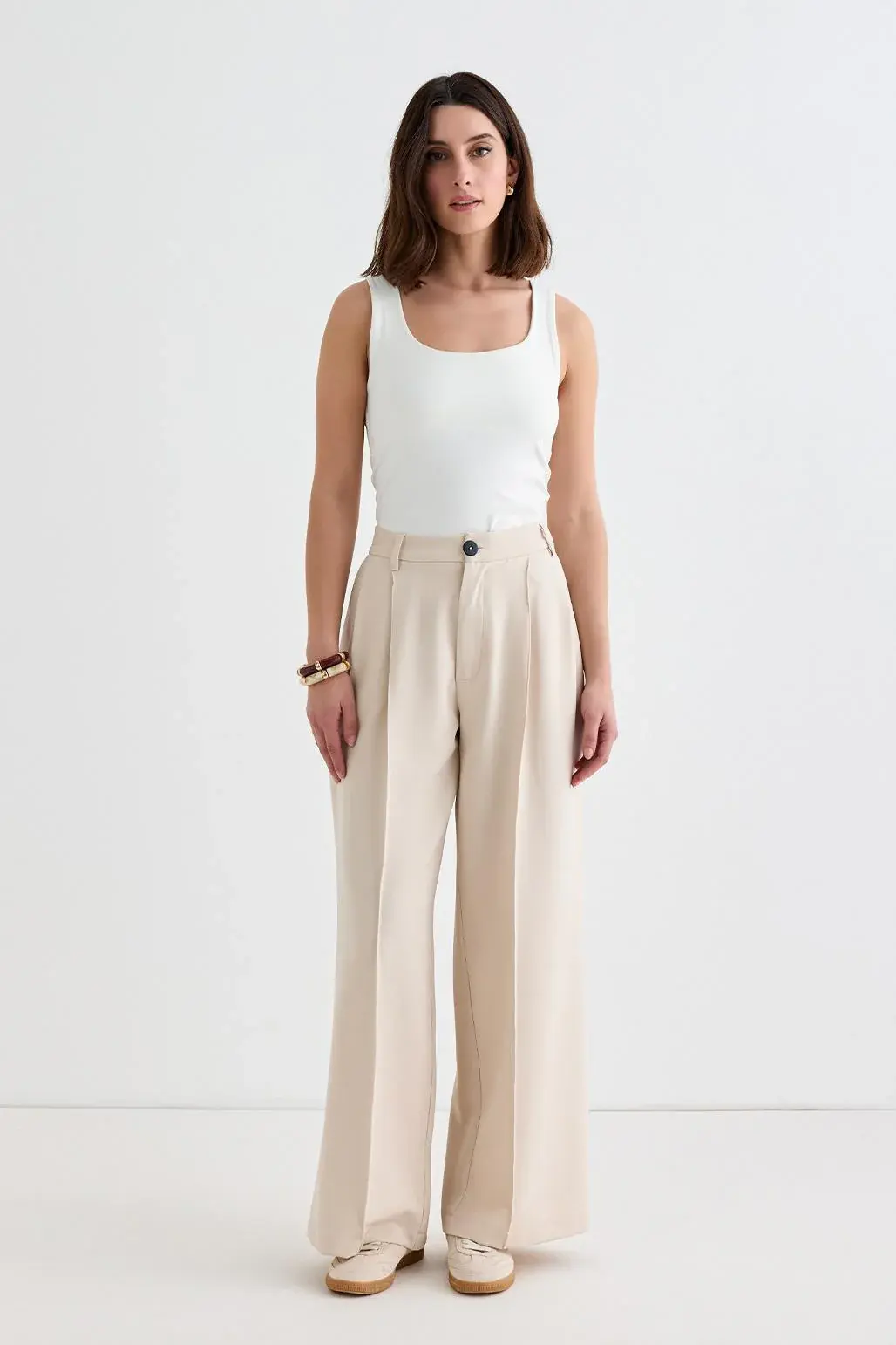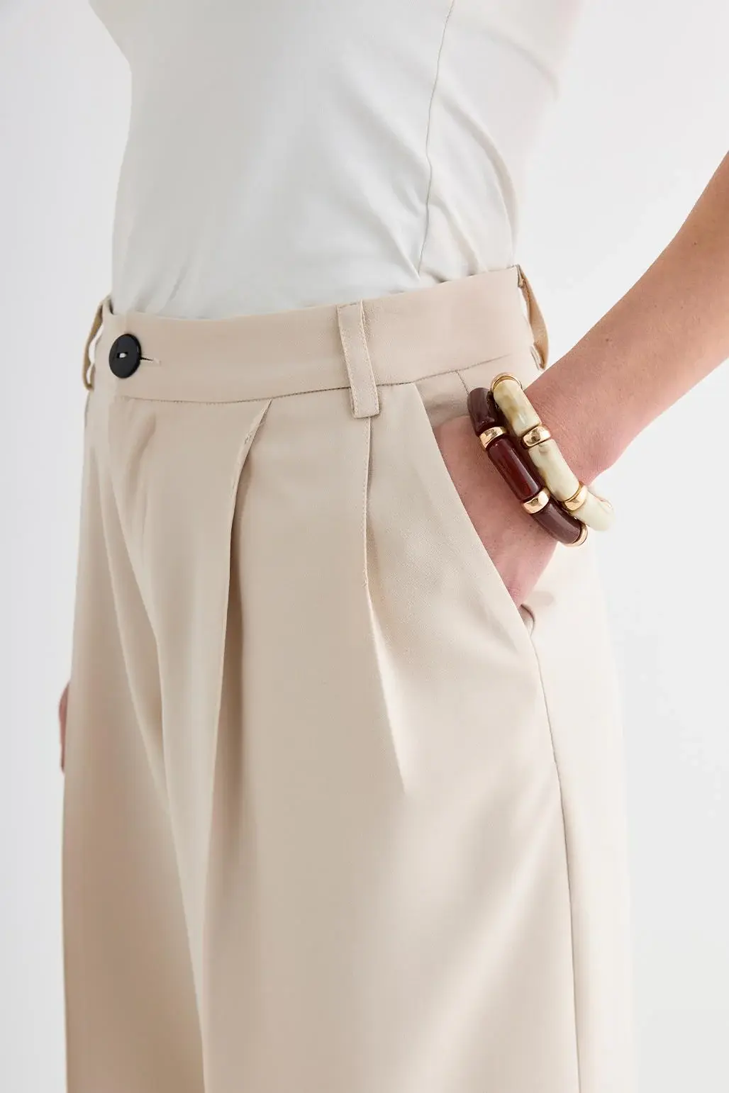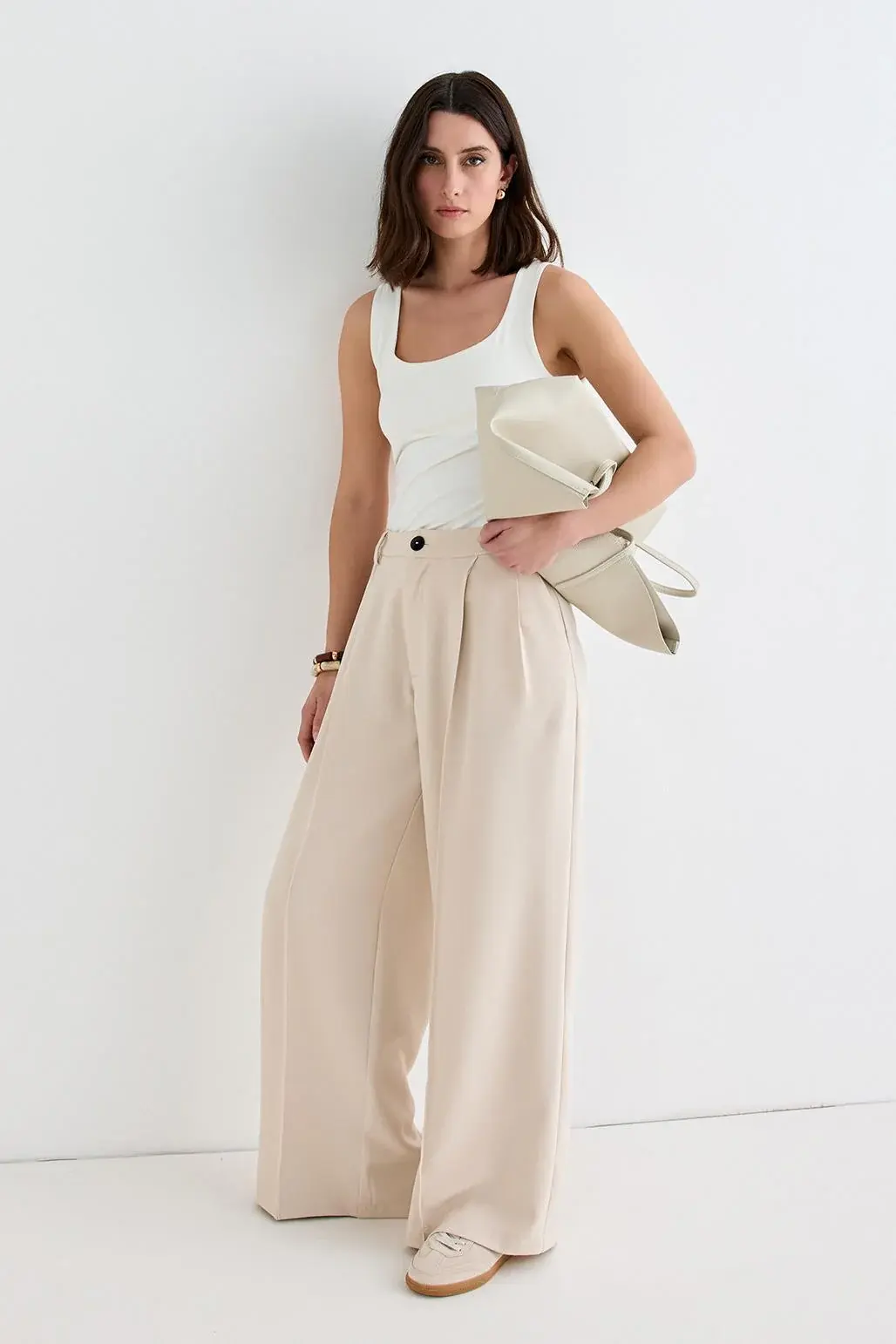Palazzo Geniş Paça Pantolon Bej