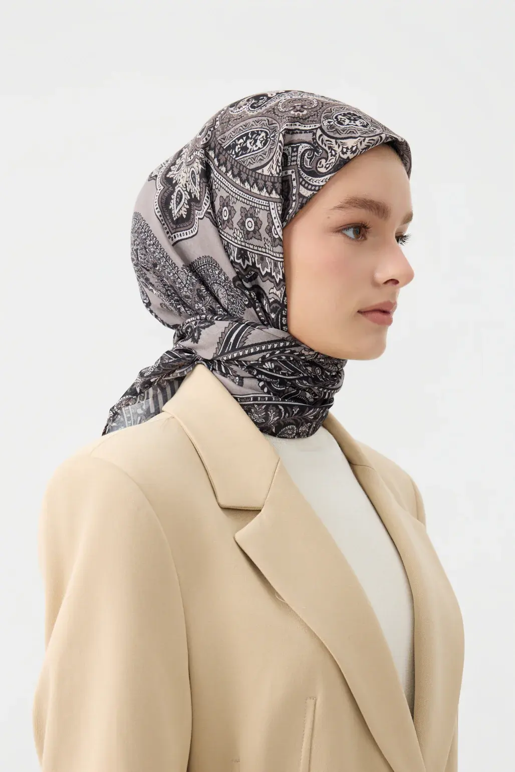 Desenli Pamuk Eşarp - Tale Desen Serisi, her detayıyla bir hikâye anlatan masalsı desenleriyle ön plana çıkıyor. Zarif motifler ve akıcı çizgiler, eşarbın her kıvrımına derinlik ve karakter kazandırırken, stilinize sofistike bir dokunuş ekliyor.