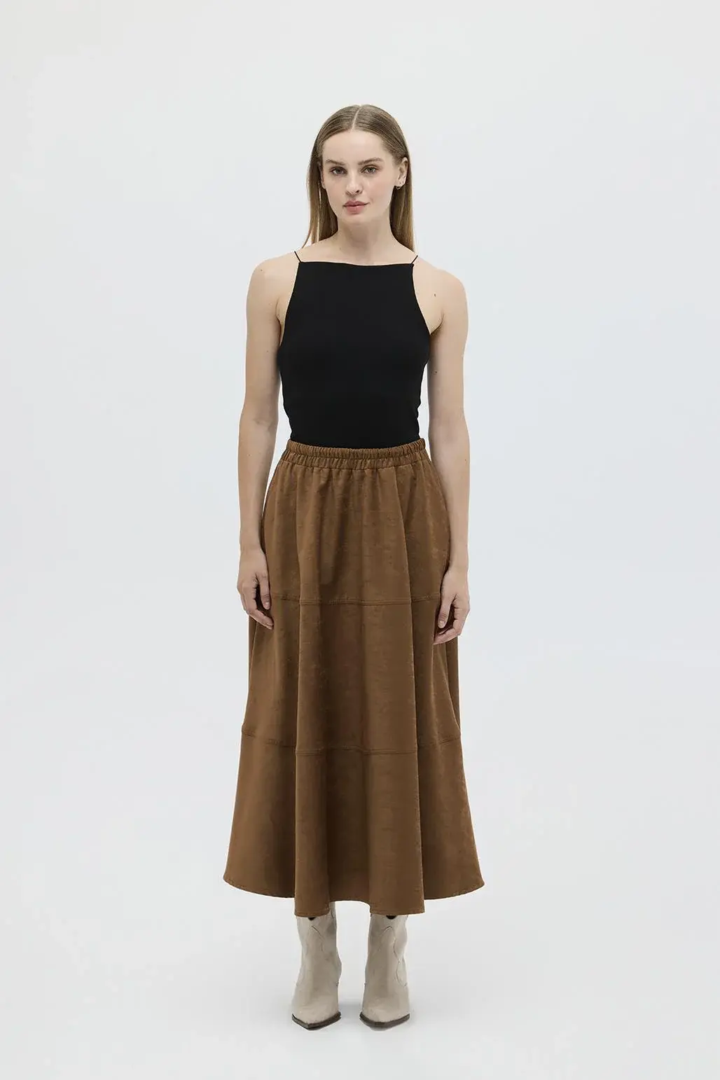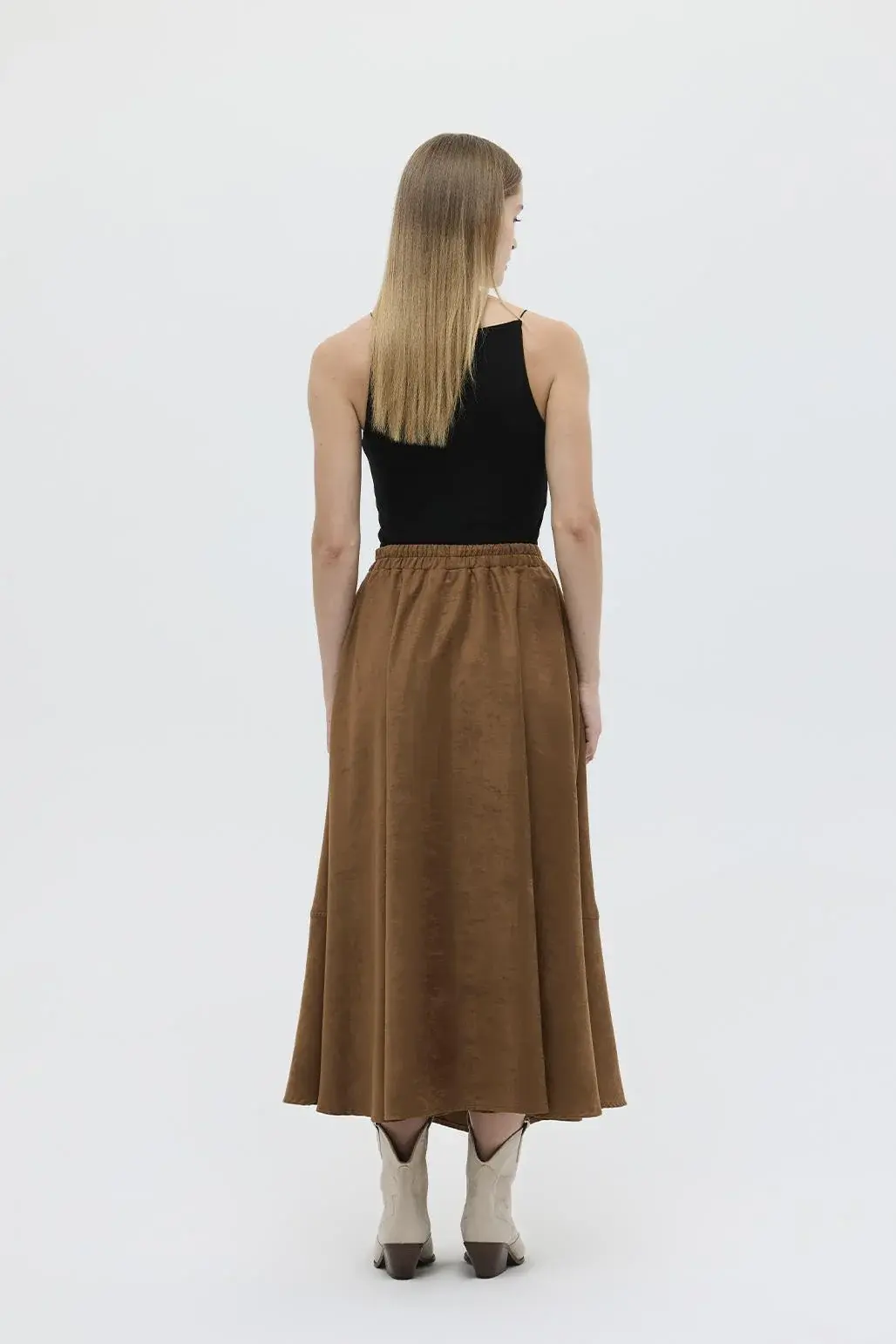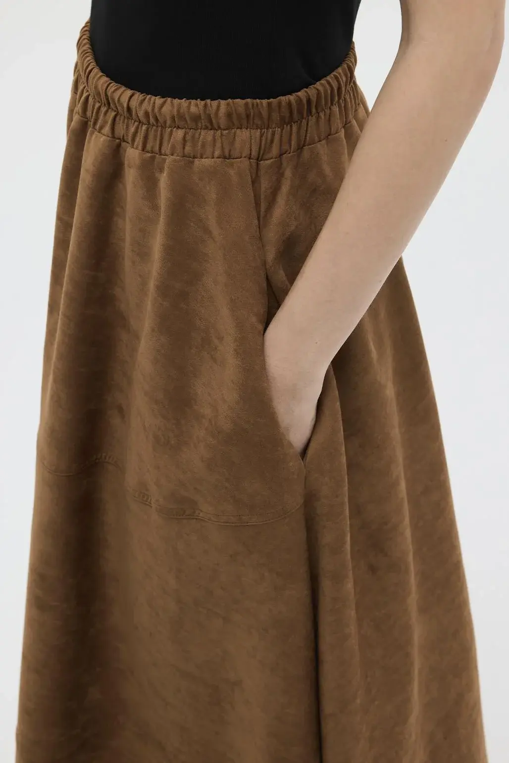 SÜET DİKİŞ DETAYLI KLOŞ ETEK TABA