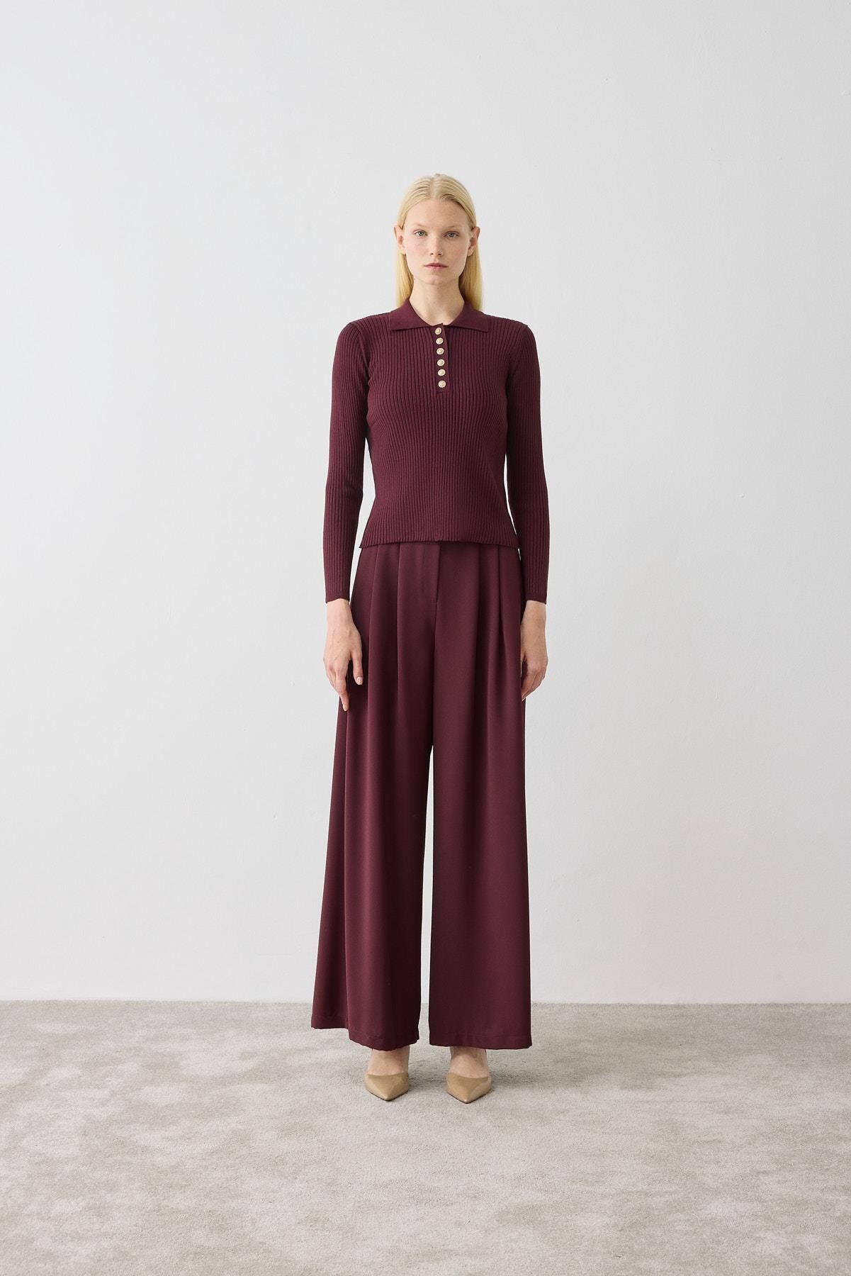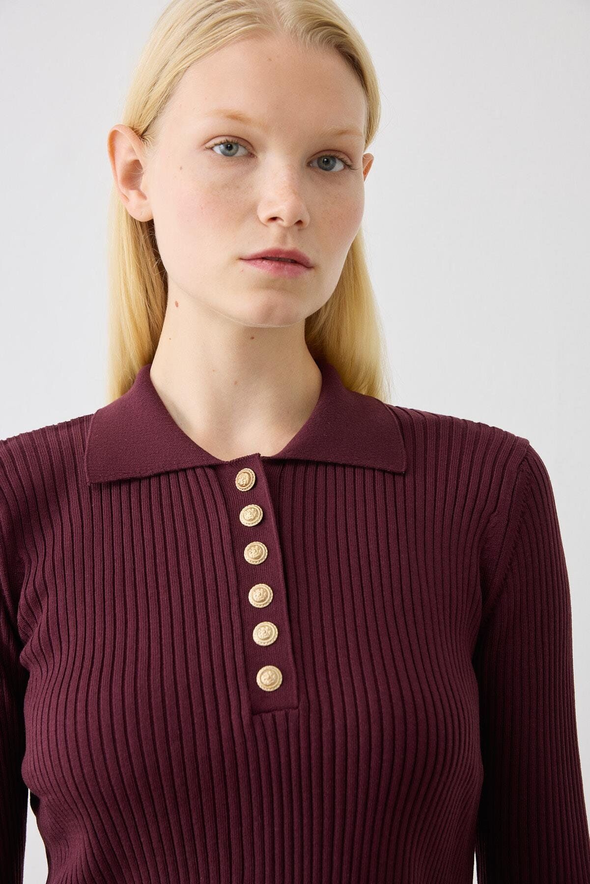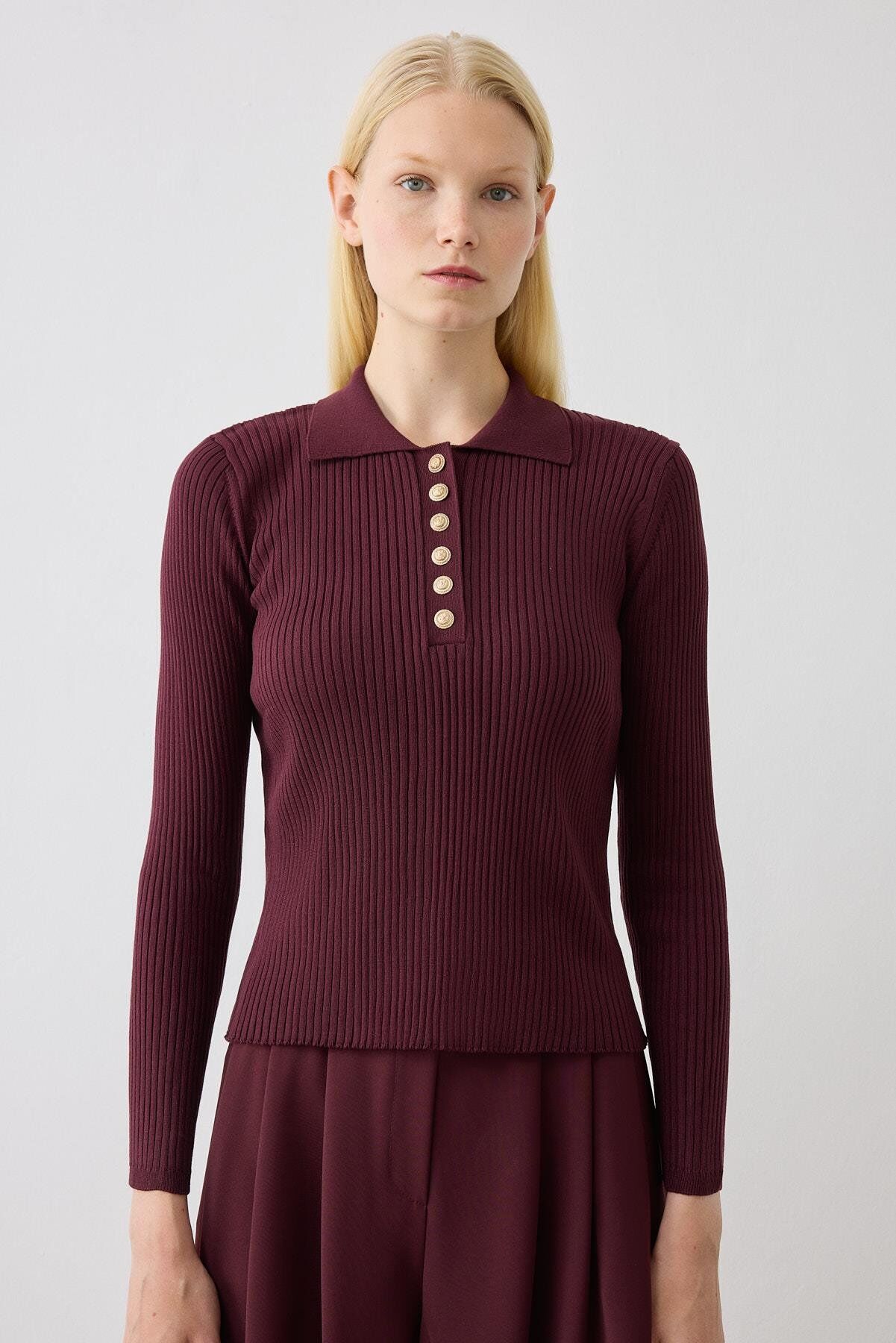 TERZİ DÜKKANI STONE TRİKO POLO YAKA KAZAK BORDO