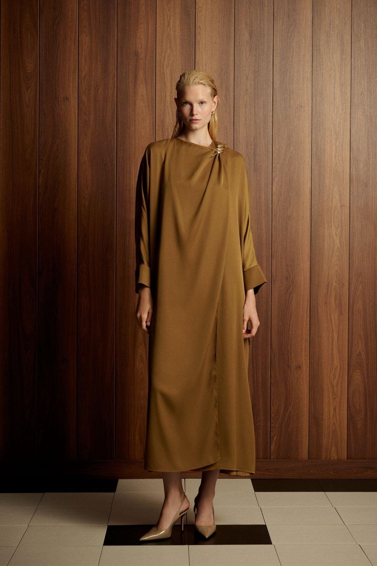 TERZİ DÜKKANI ALVA ŞAL DETAYLI KAP-ELBİSE TAKIM YEŞİL