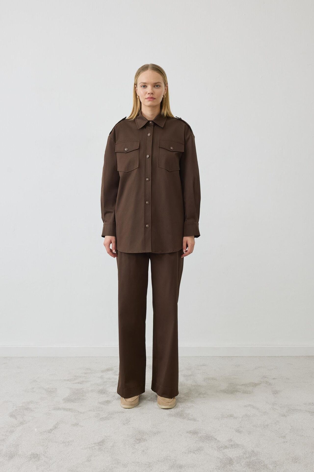 TERZİ DÜKKANI AMORE GABARDİN CEPLİ PANTOLON TAKIM KAHVERENGİ