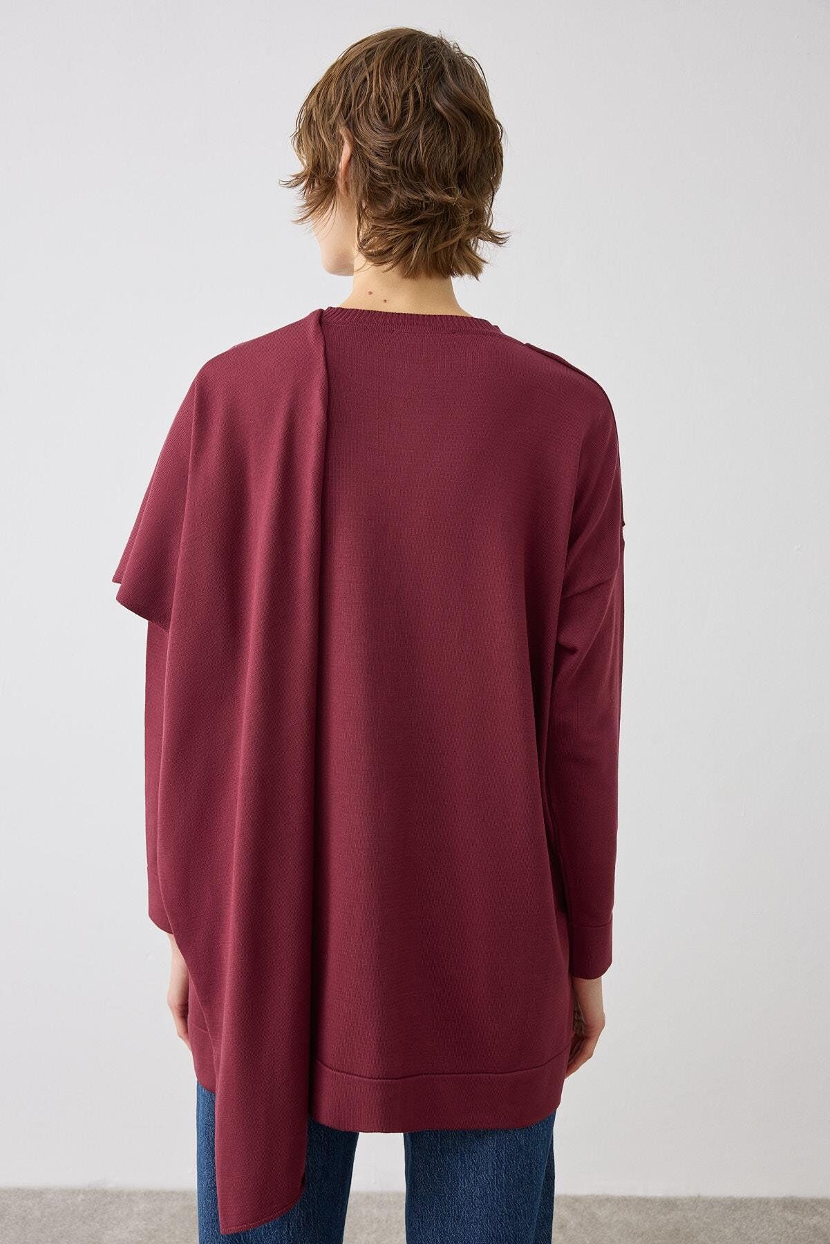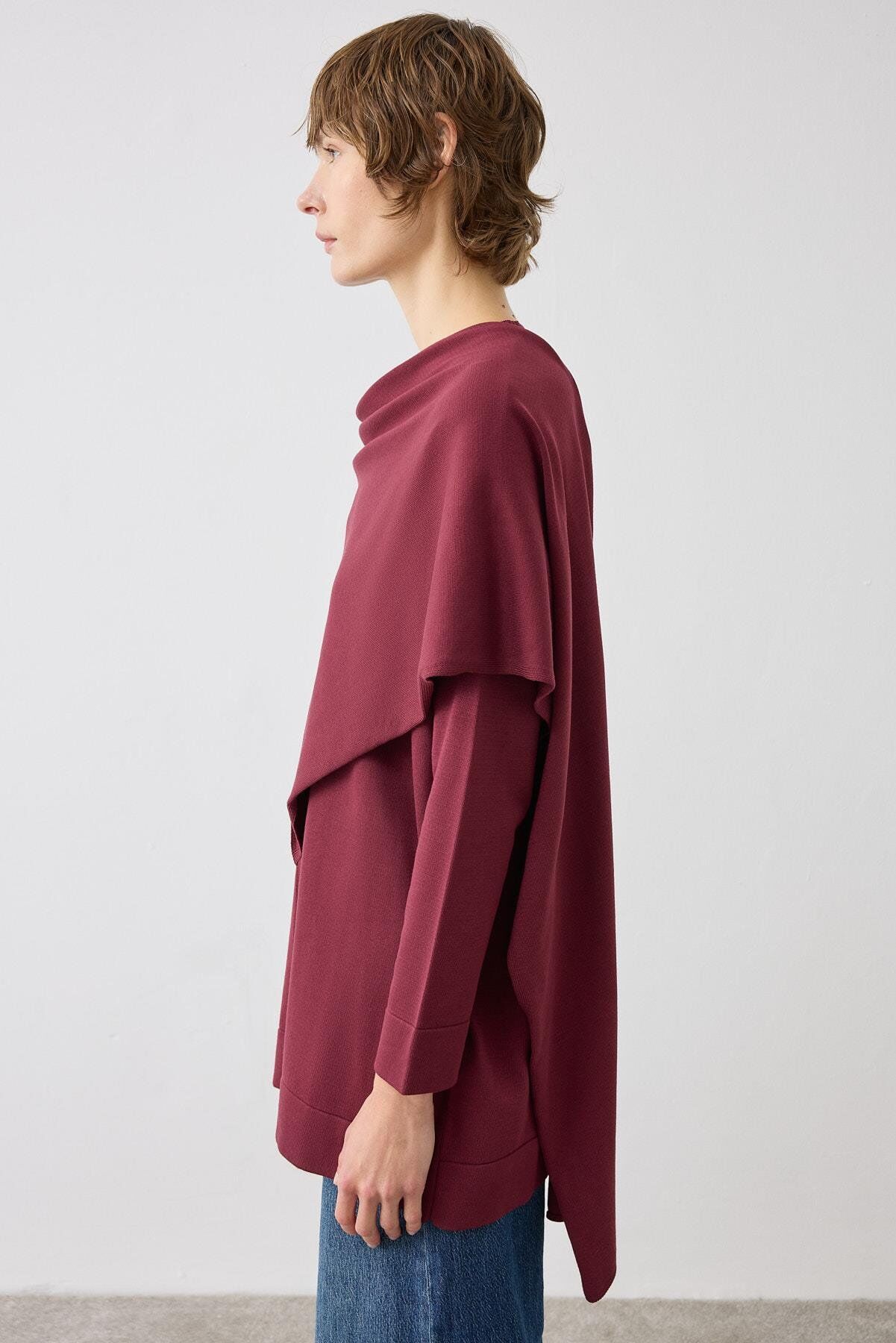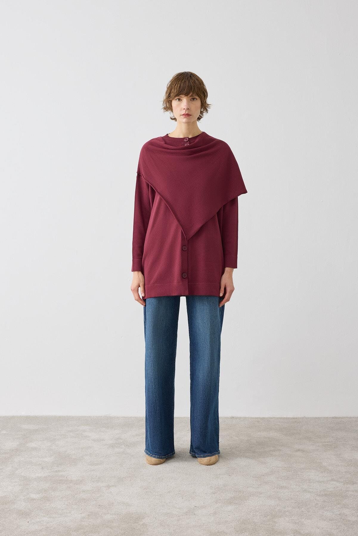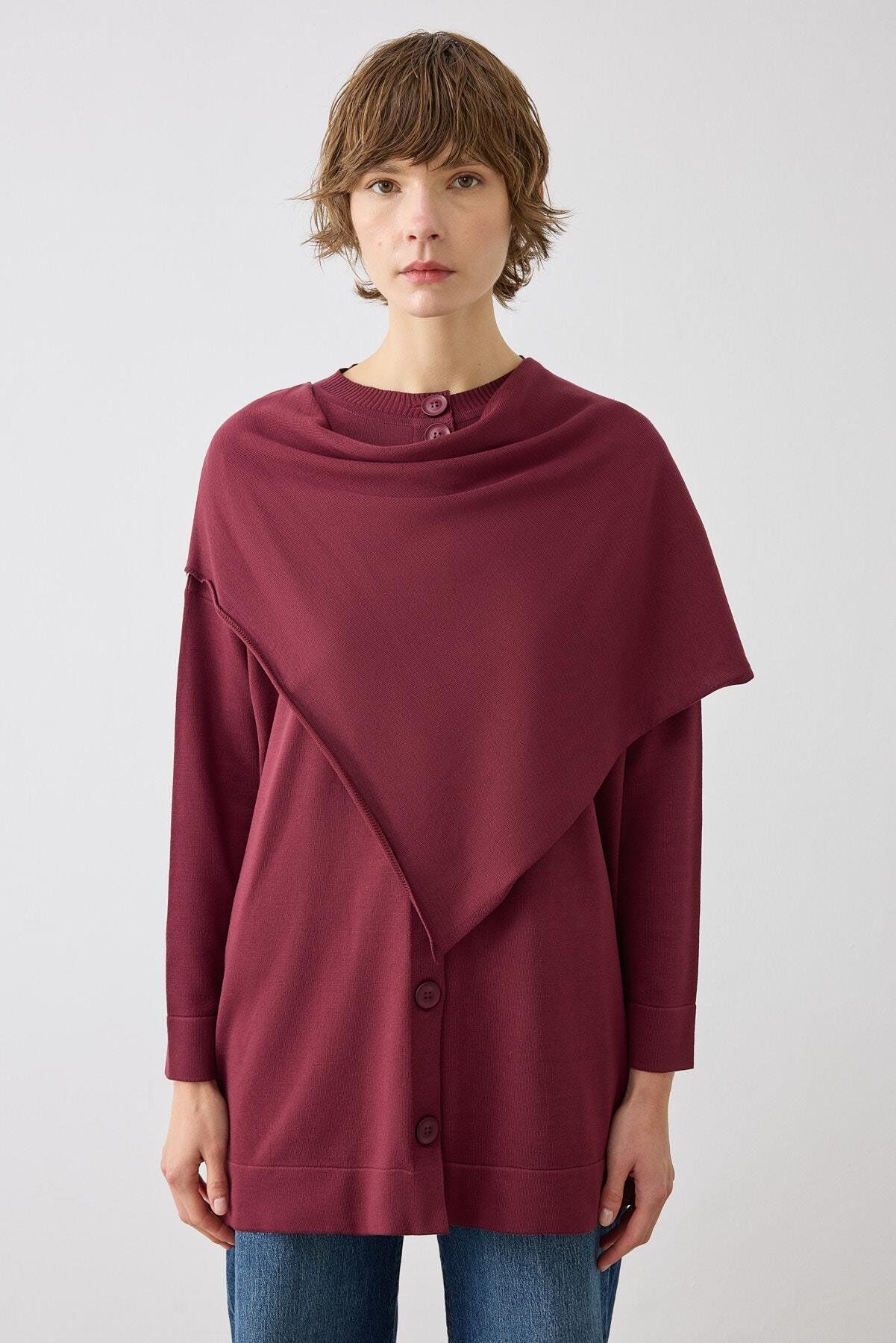 TERZİ DÜKKANI BRELA ŞAL DETAYLI TRİKO HIRKA BORDO