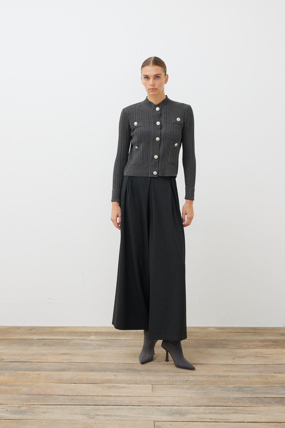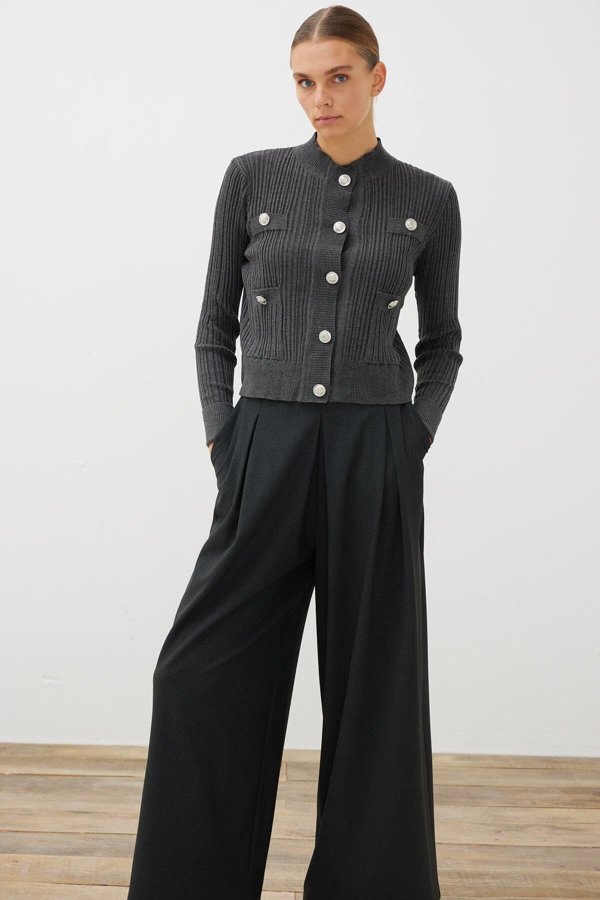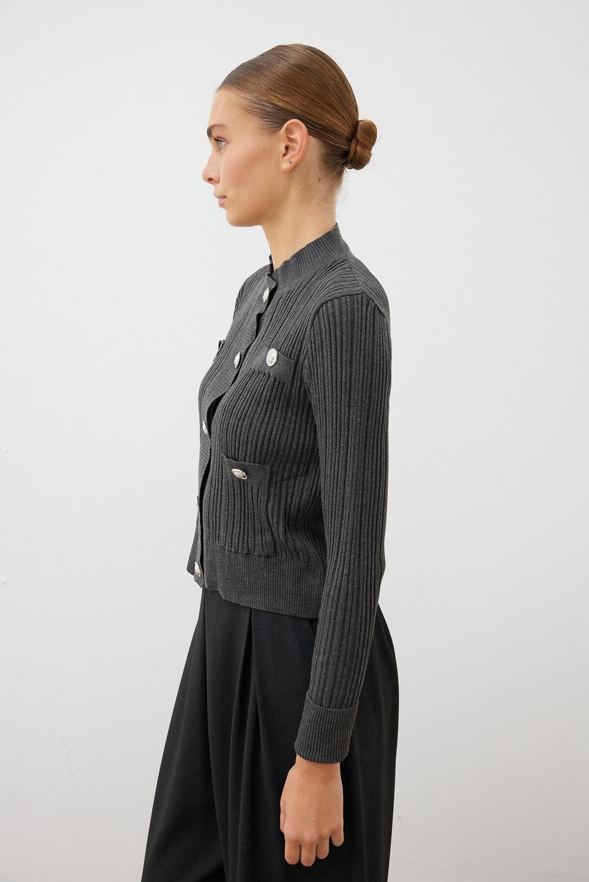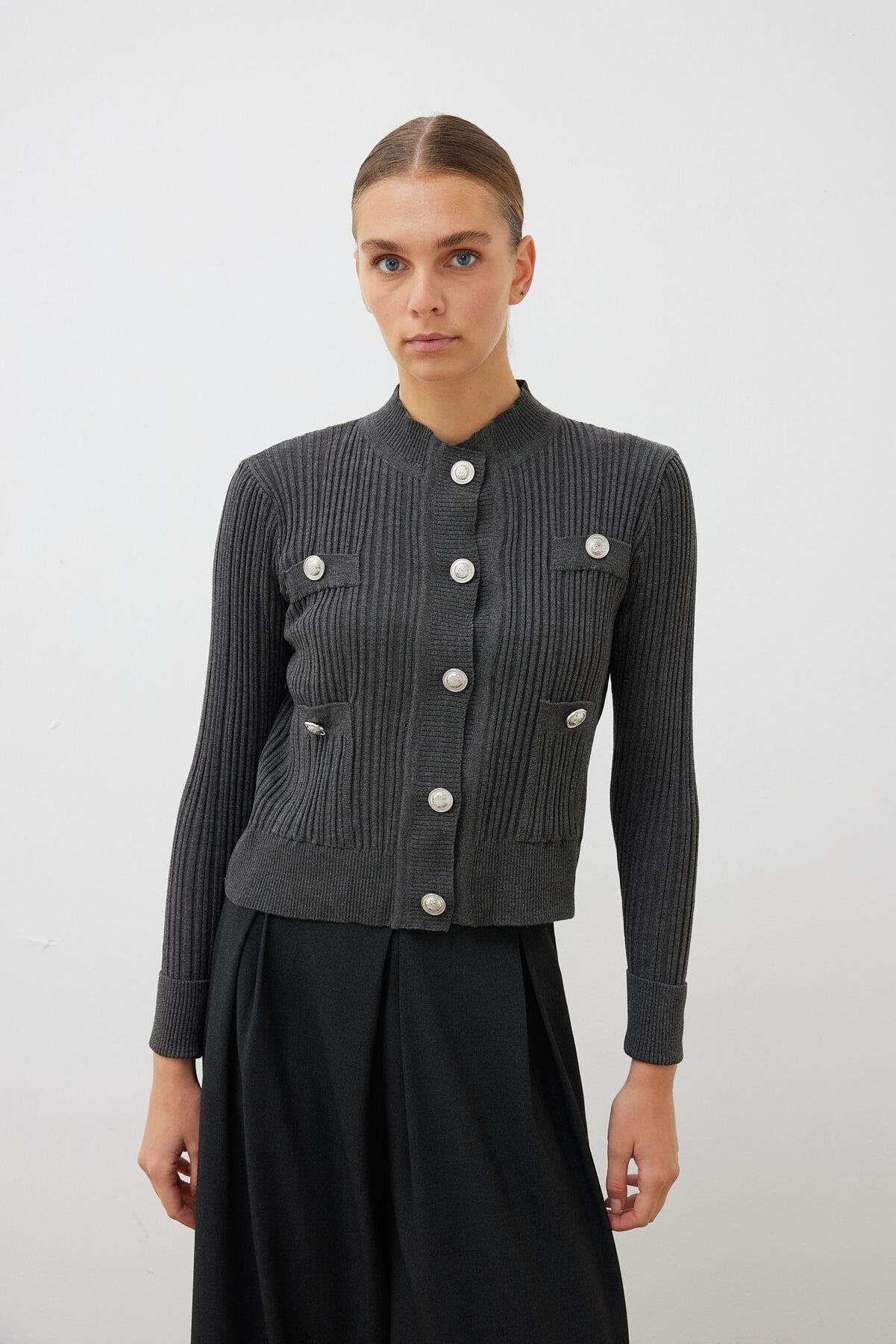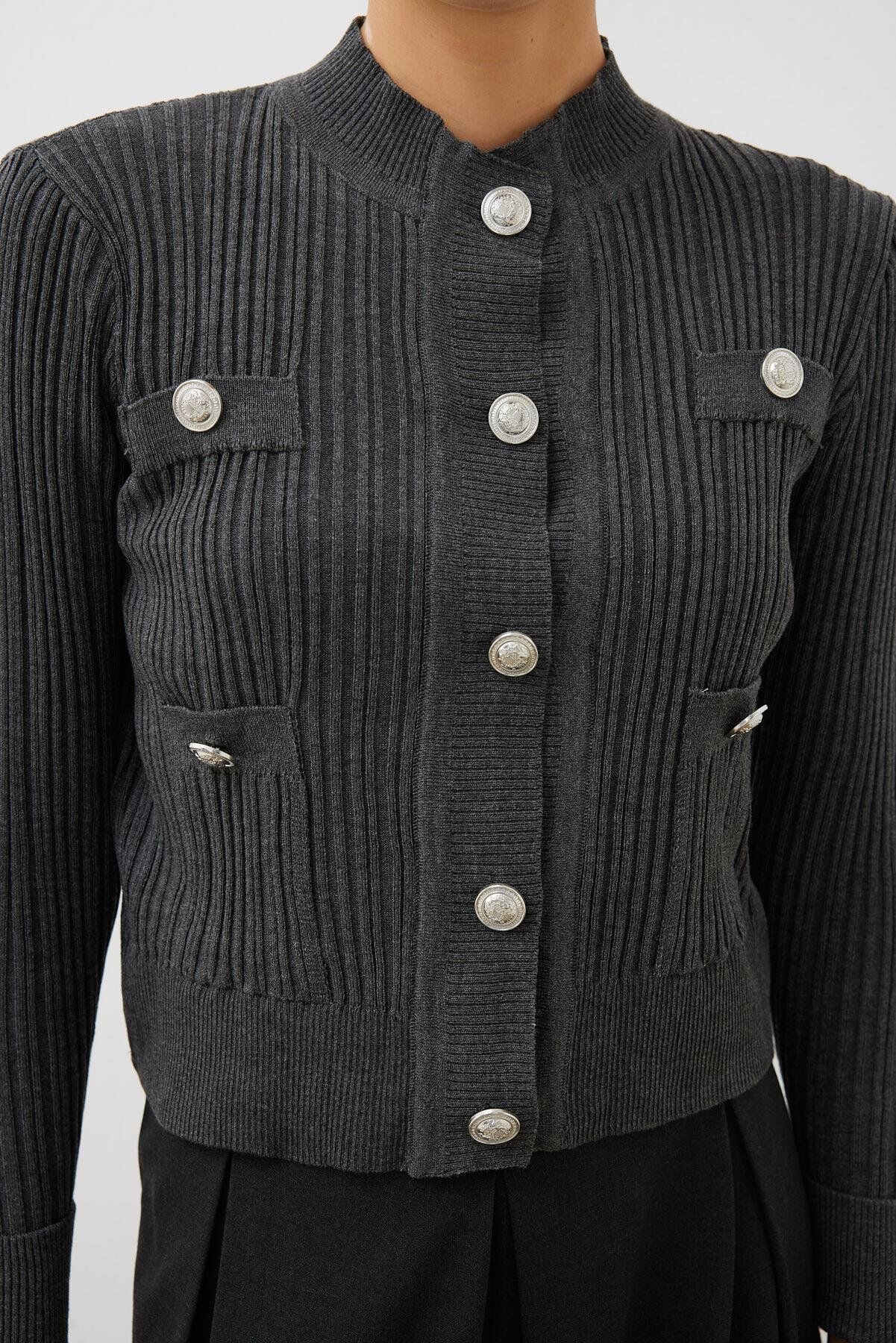 TERZİ DÜKKANI DİVA DÜĞMELİ TRİKO HIRKA FÜME