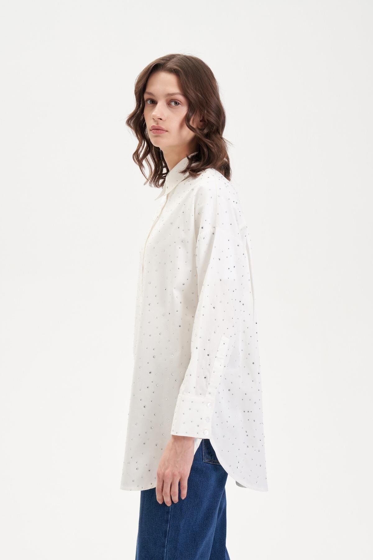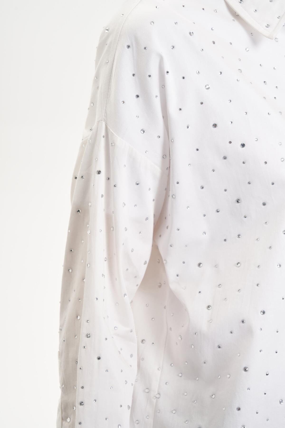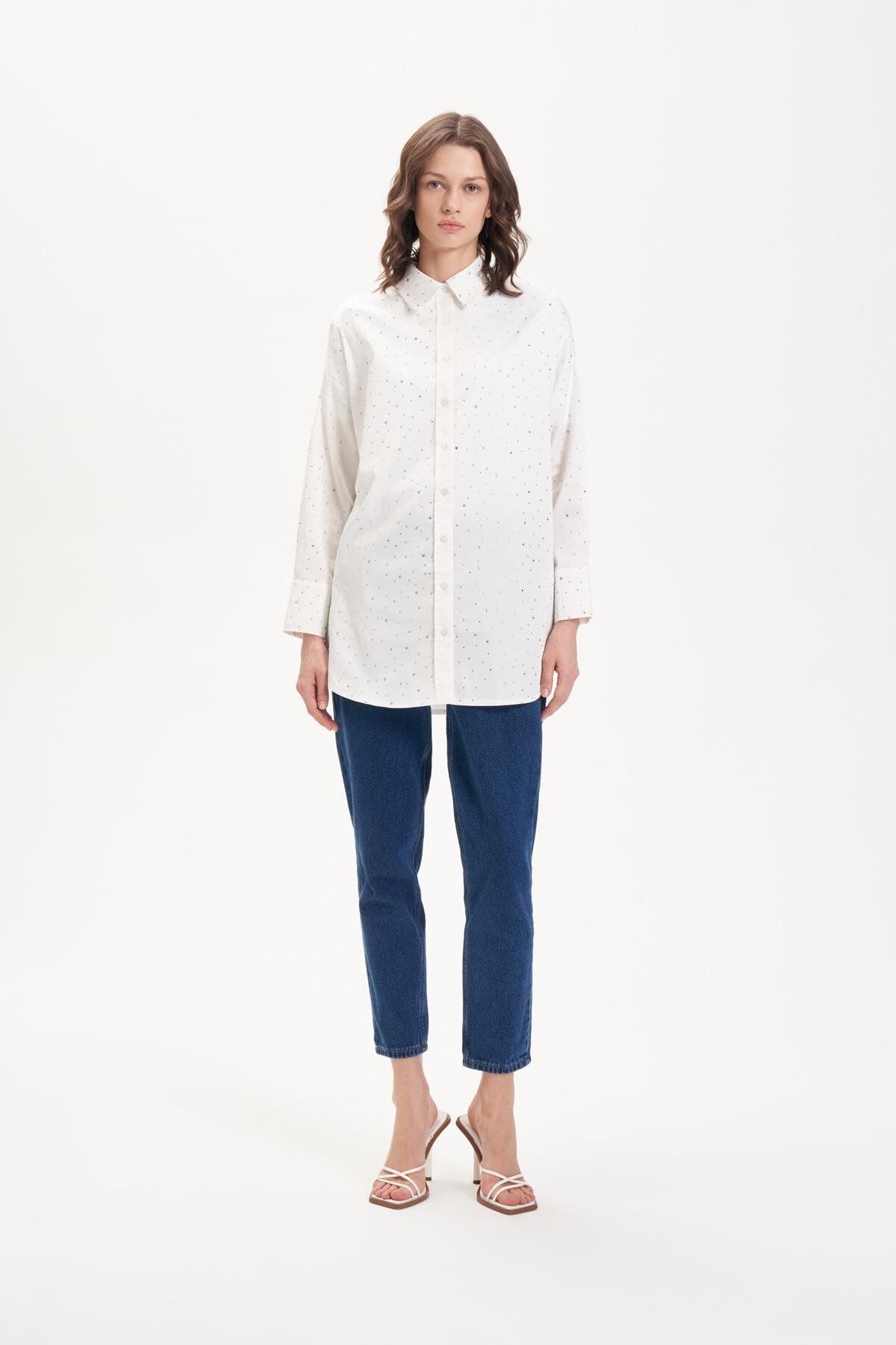 TERZİ DÜKKANI LAURA SERPME TAŞLI KOTON GÖMLEK BEYAZ