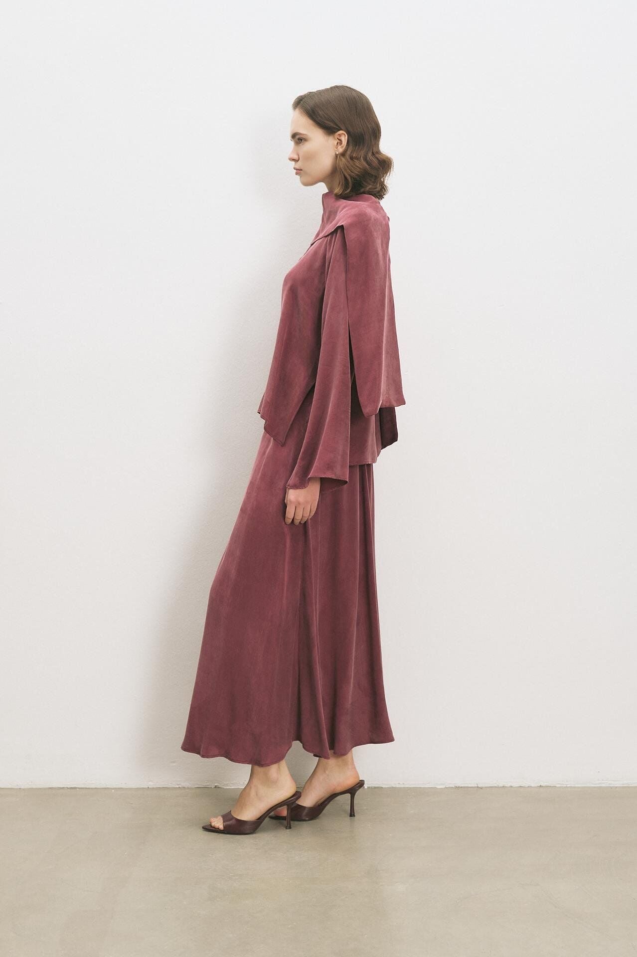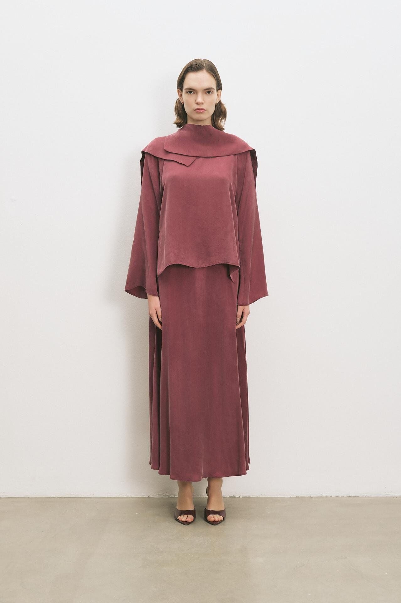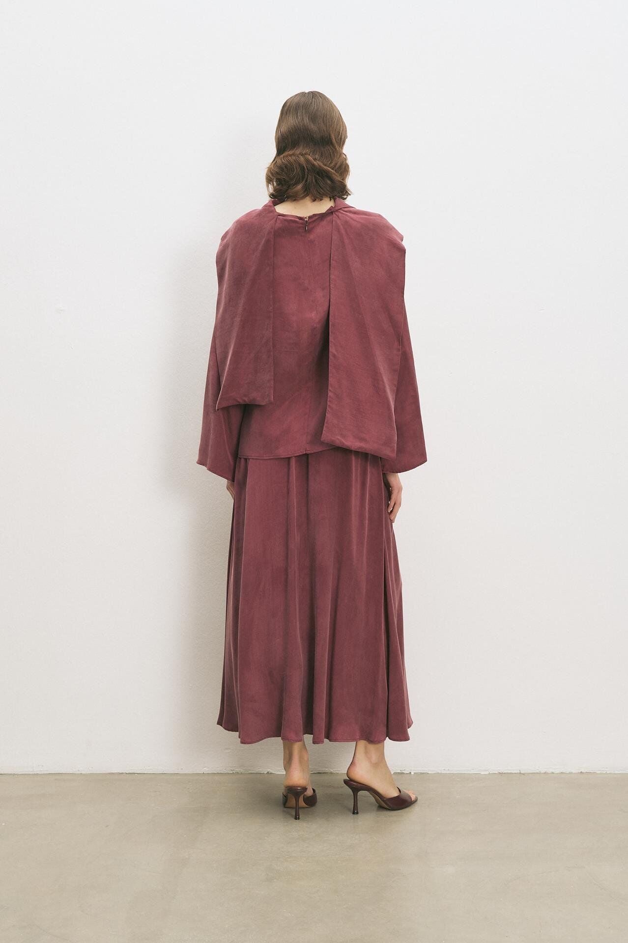 TERZİ DÜKKANI QUEEN TAŞLANMIŞ İPEK ETEKLİ TAKIM BORDO