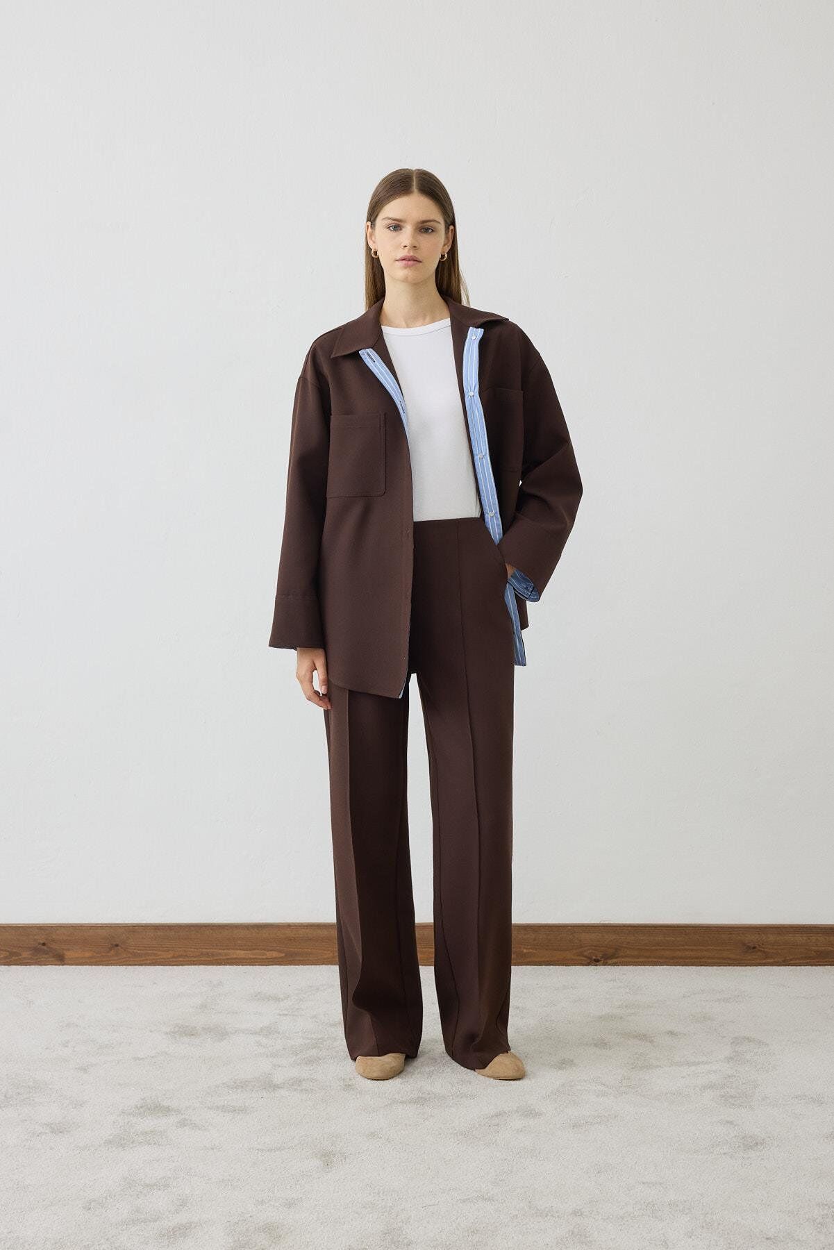 TERZİ DÜKKANI RİVA ÇİZGİ GARNİLİ PANTOLONLU TAKIM KAHVE