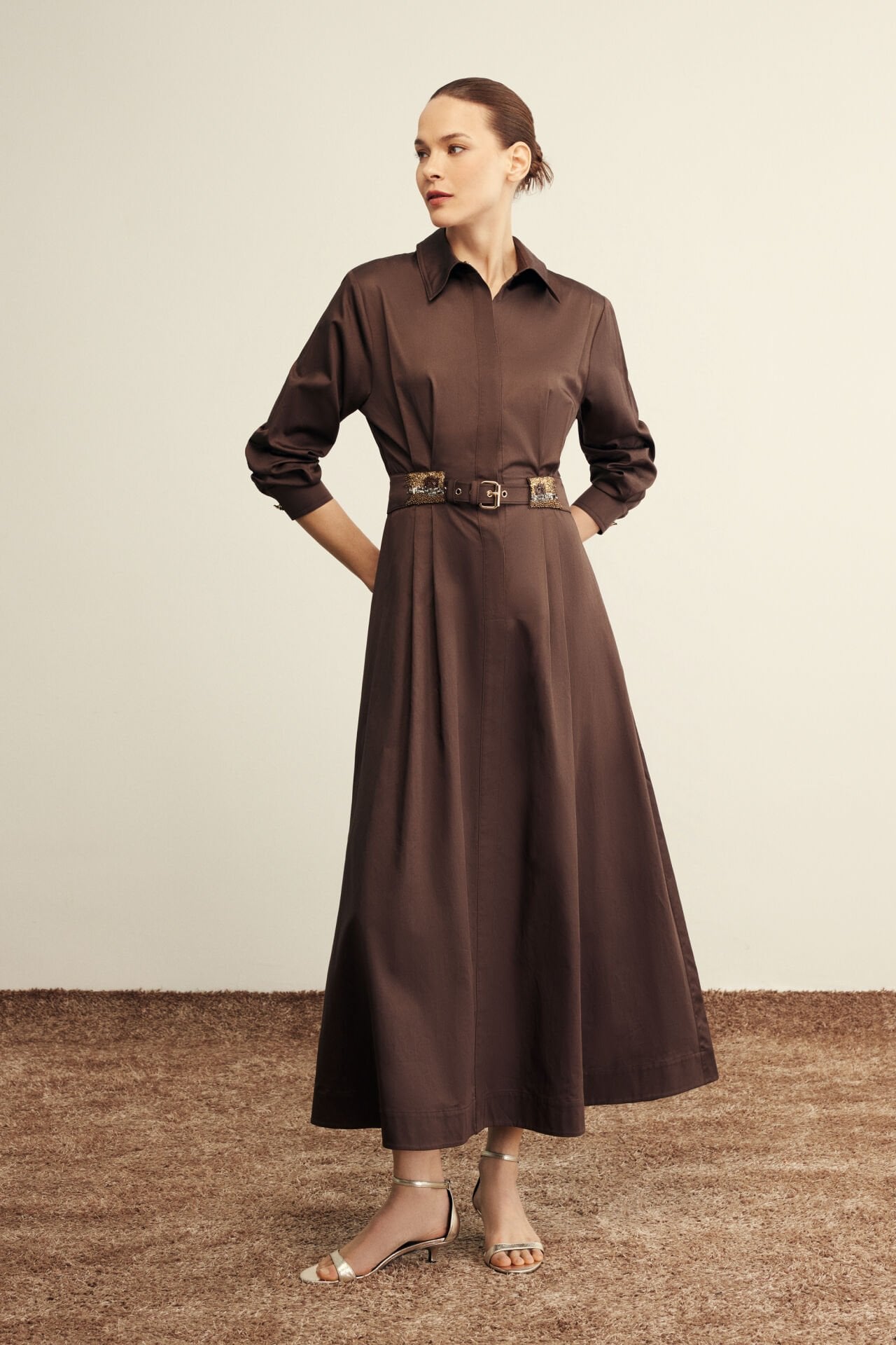 VENÖVE CYRA ELBİSE KAHVERENGİ