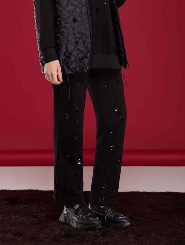 YEŞİM ÖZCAN NAKIŞLI ÖRME PANTOLON SİYAH