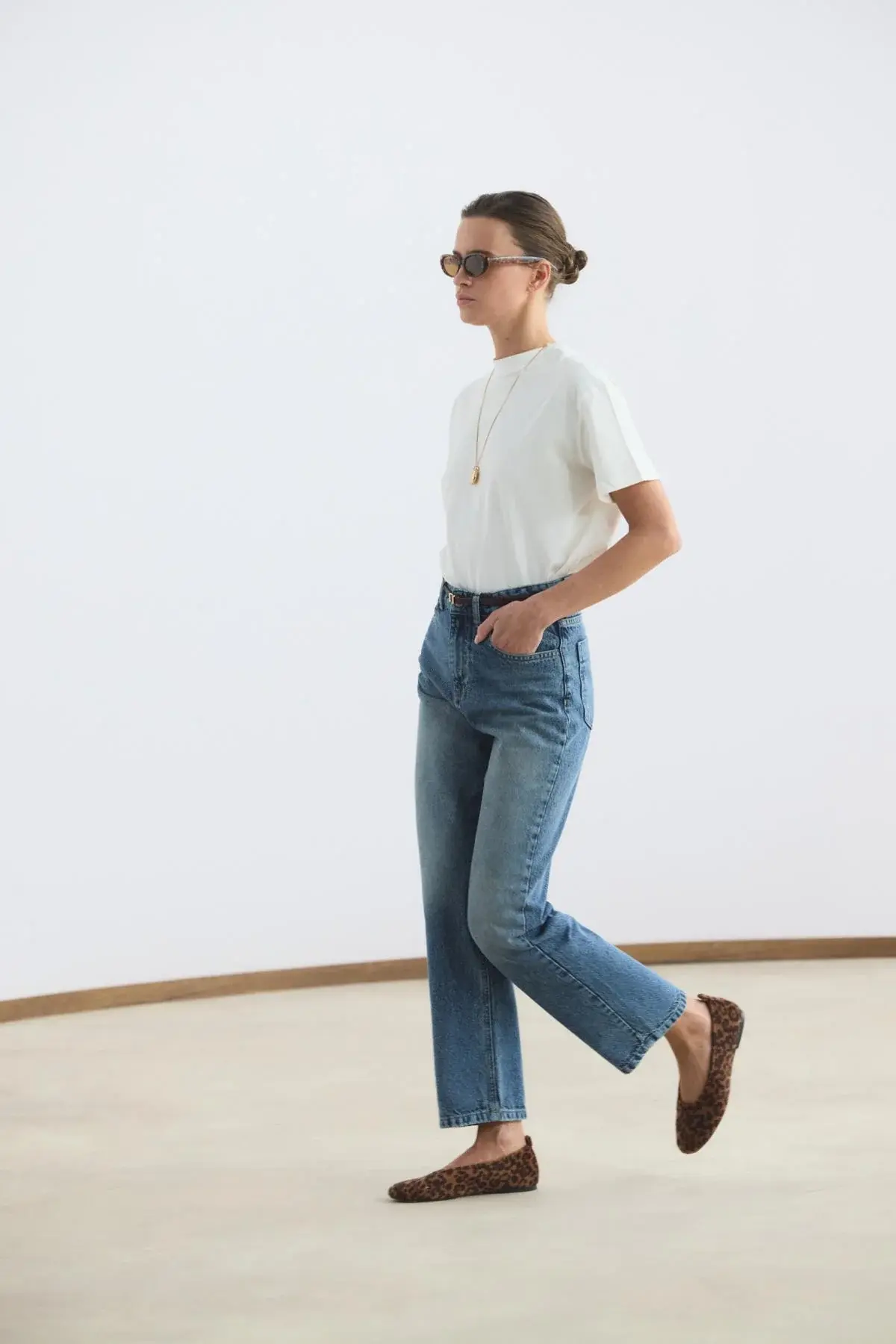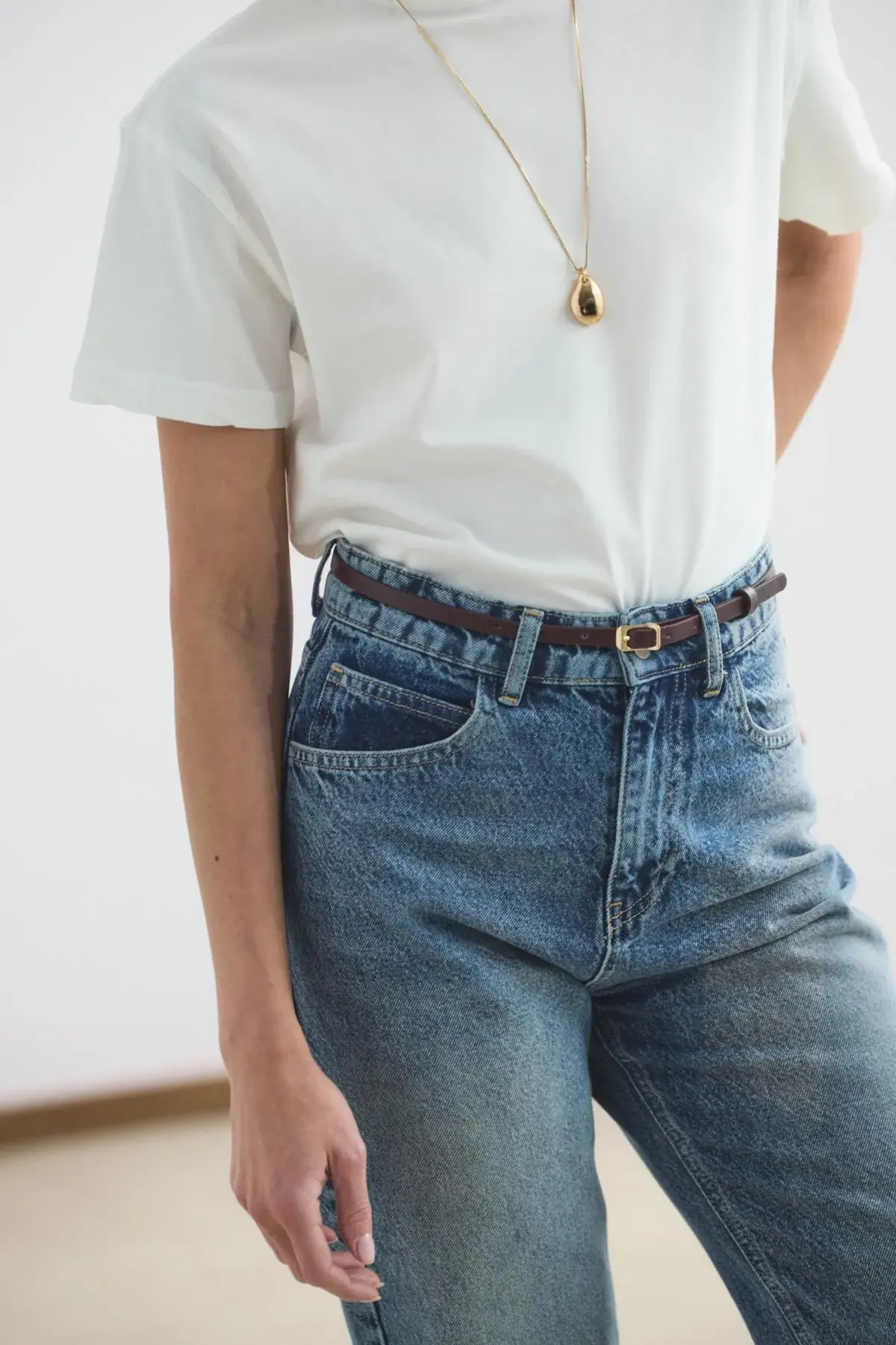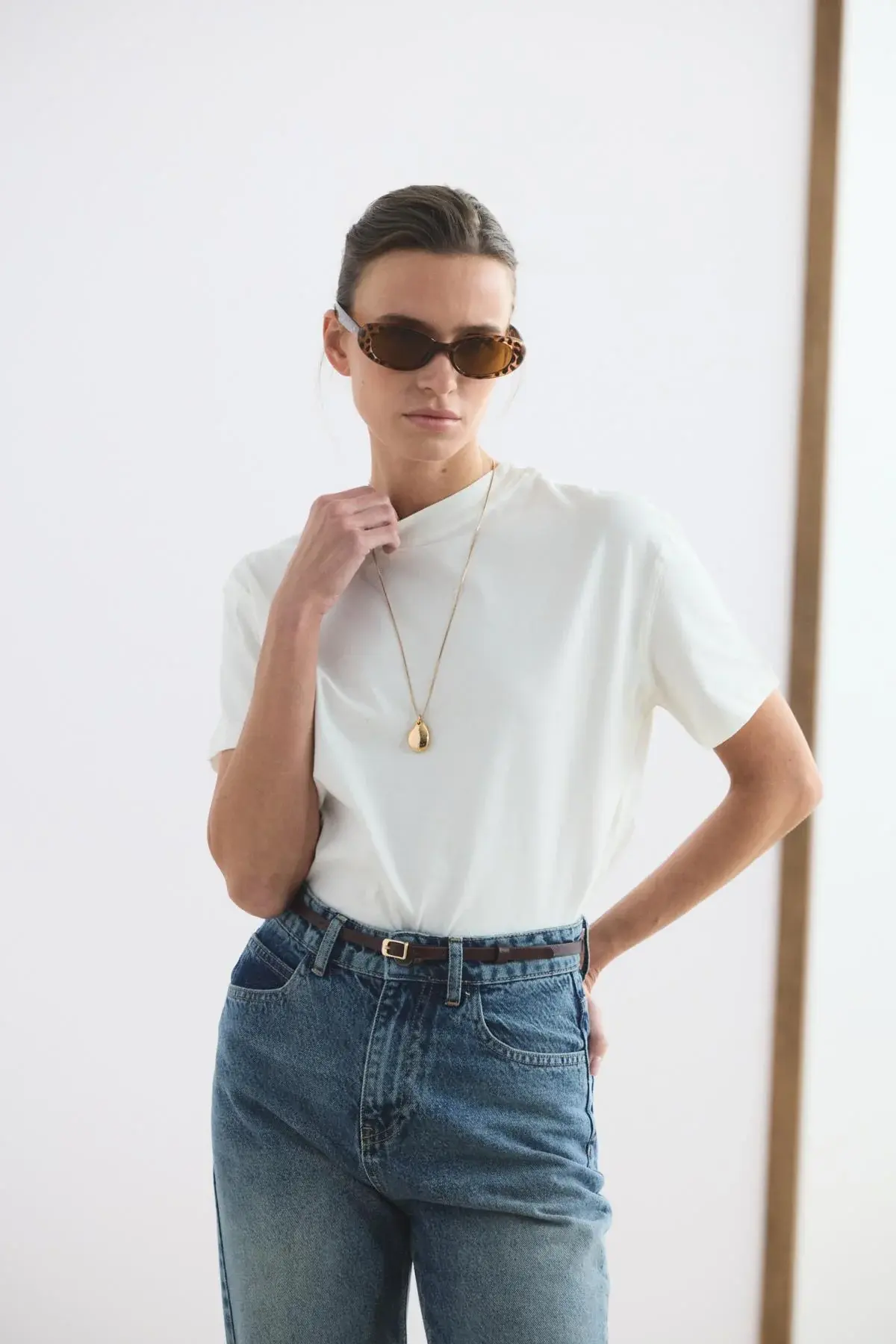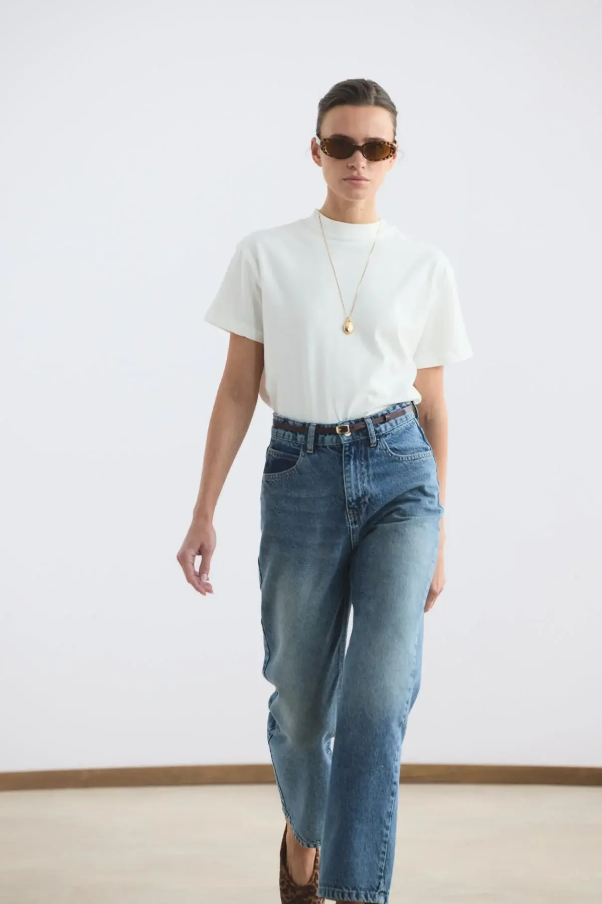 Yüksek Bel Düz Paça Kot Pantolon Orta Mavi, gabardin kumaşının dayanıklı ve formunu koruyan yapısıyla stilinize güçlü bir temel oluşturur. Bel hattını zarifçe vurgulayan yüksek bel tasarımı, düz paça kesimiyle birleşerek bacak boyunu daha uzun ve dengeli gösteren zamansız bir silüet sunar. Cepli klasik yapısı ve sağlam fermuar kapaması, günlük kullanımda işlevselliği ön plana çıkarır.