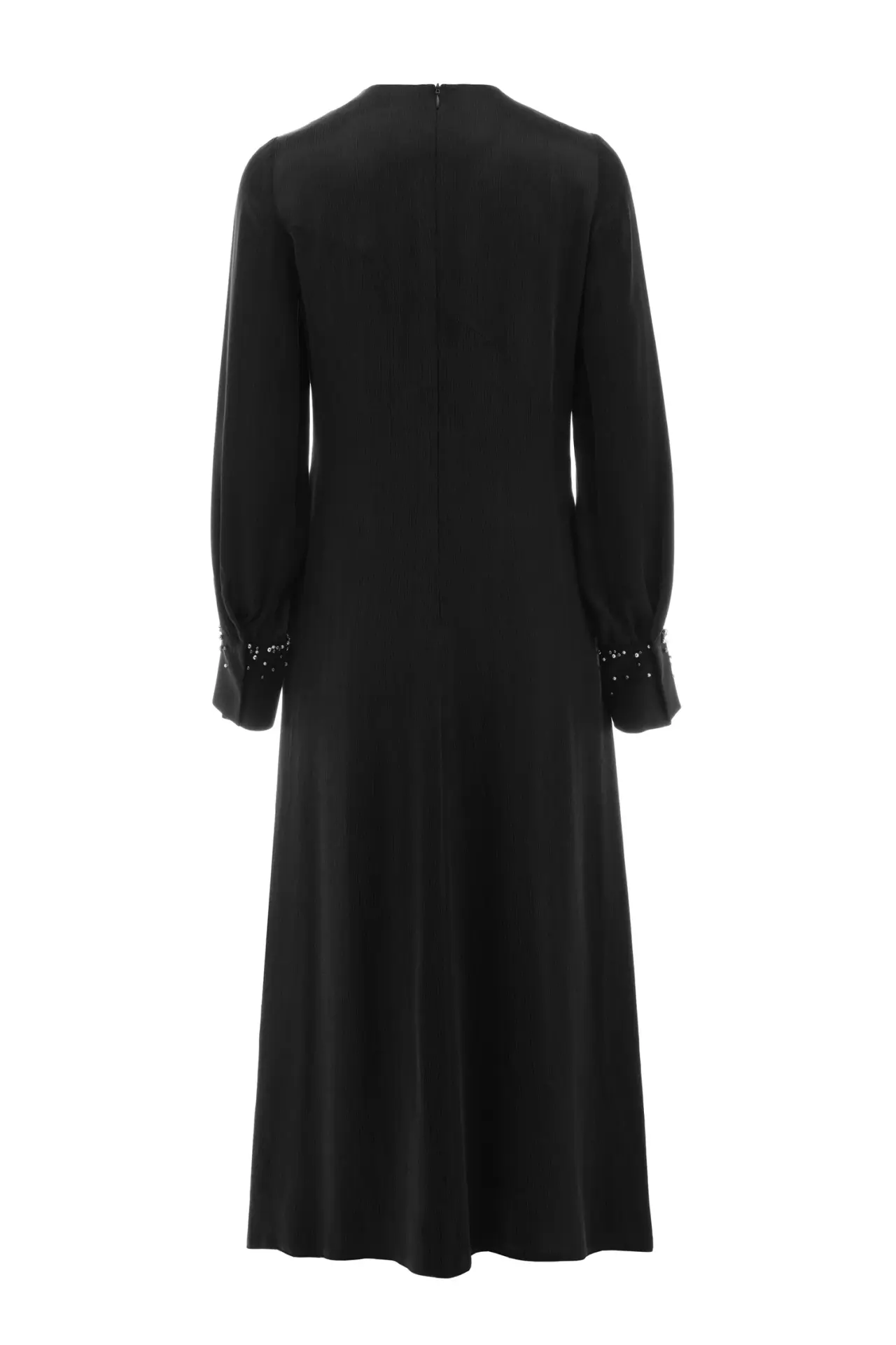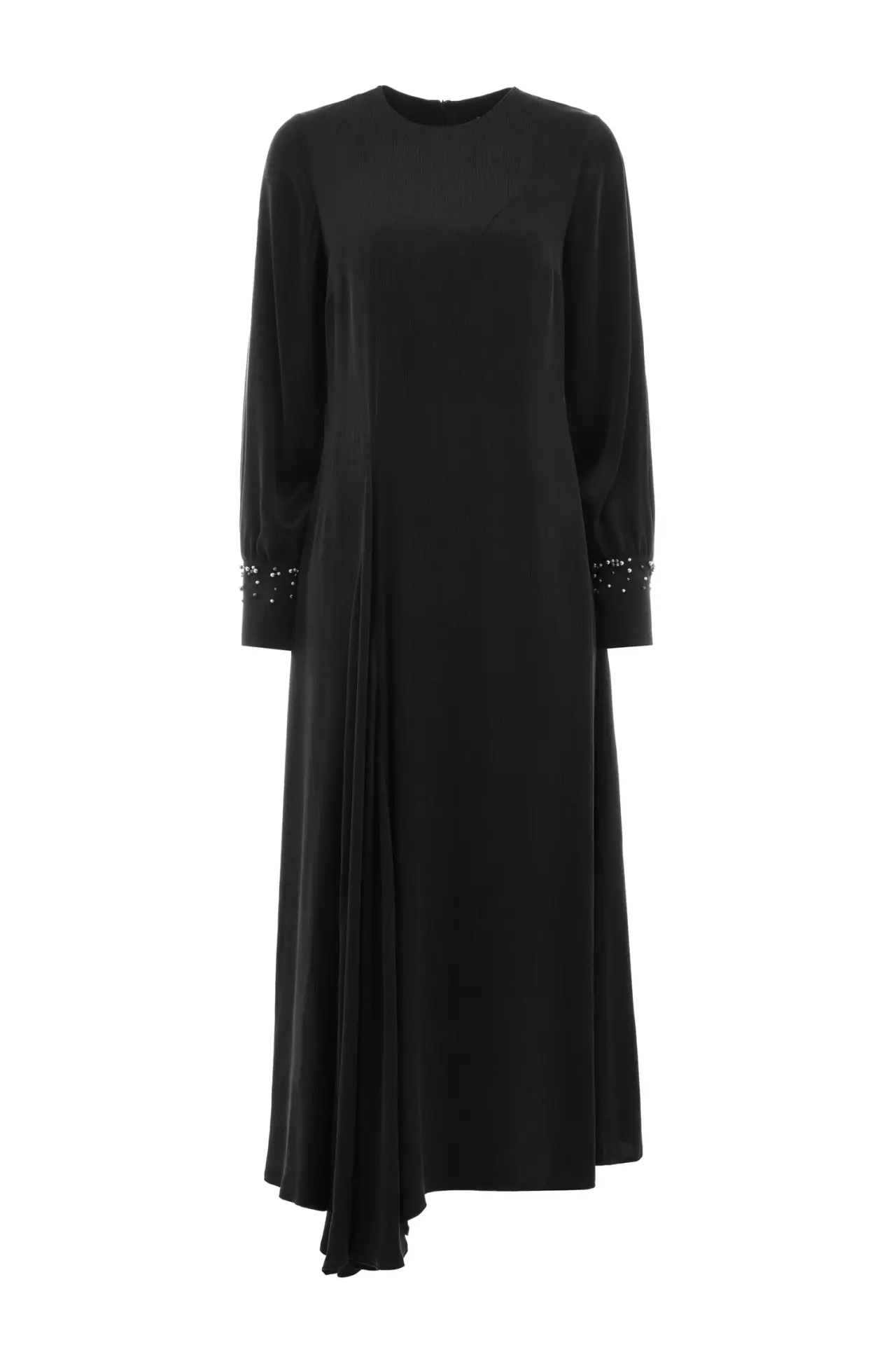 ZEMS BONCUKLU SİYAH CUPRO UZUN ELBİSE